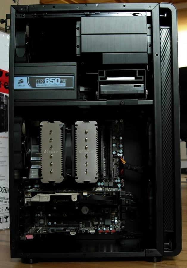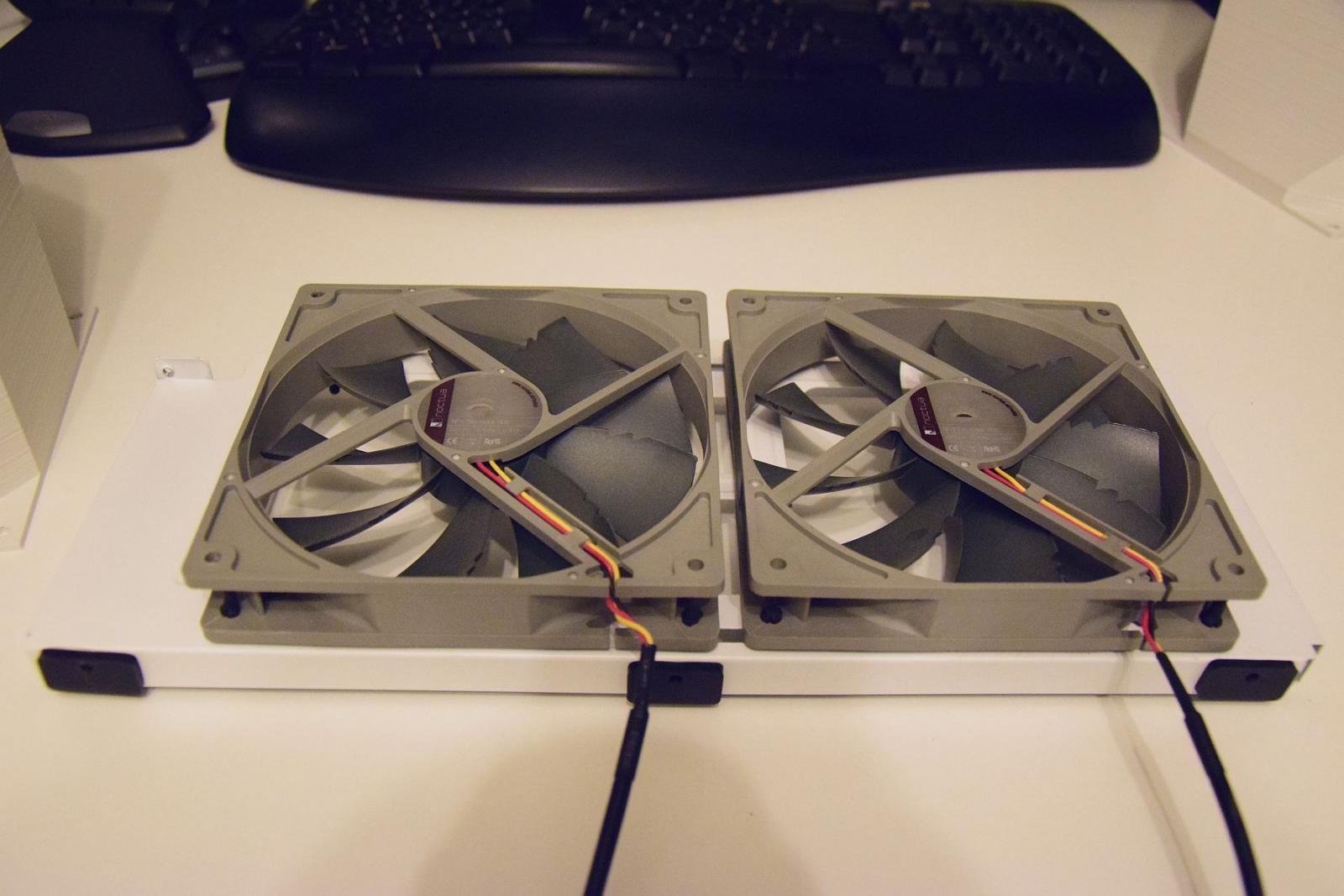 Die Unterteile der Kanäle kamen auf die 2 Lüfter drauf, dann die ganze Konstruktion ins Gehäuse rein.