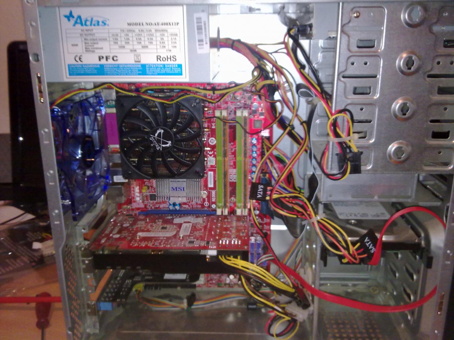 Und nicht über den Seitenlüfter wundern, habe nur 3 Plätz für Lüfter, davon 1 Unter der HDD, aber da der Midi Tower keine Standfüße hat, steht er platt aufm Boden--->Lüfter würde kein Lüftchen ziehen.