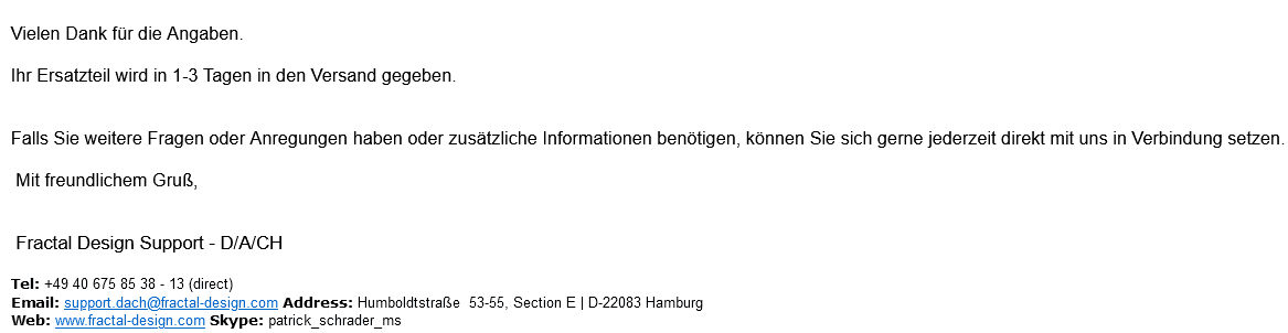 Echt 15 Minuten später hatte ich schon diese Antwort
