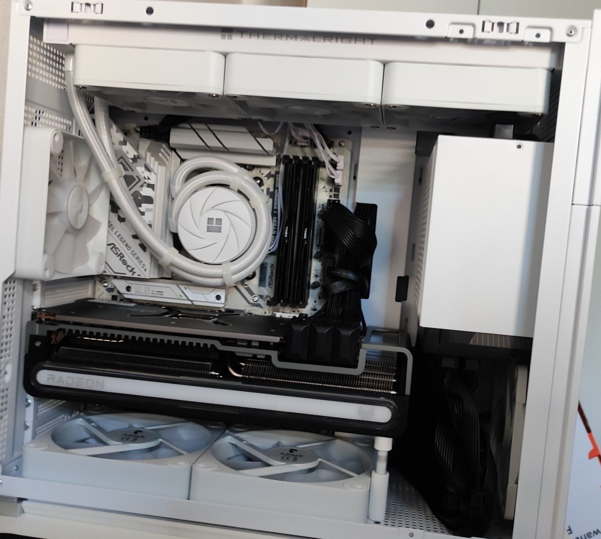 Die Nitro 7900XTX passt mit dem Mainboard überhaupt nicht ins Gehäuse. 1 Slot weiter oben, würde sie passen, aber auch hier dann eher knapp.