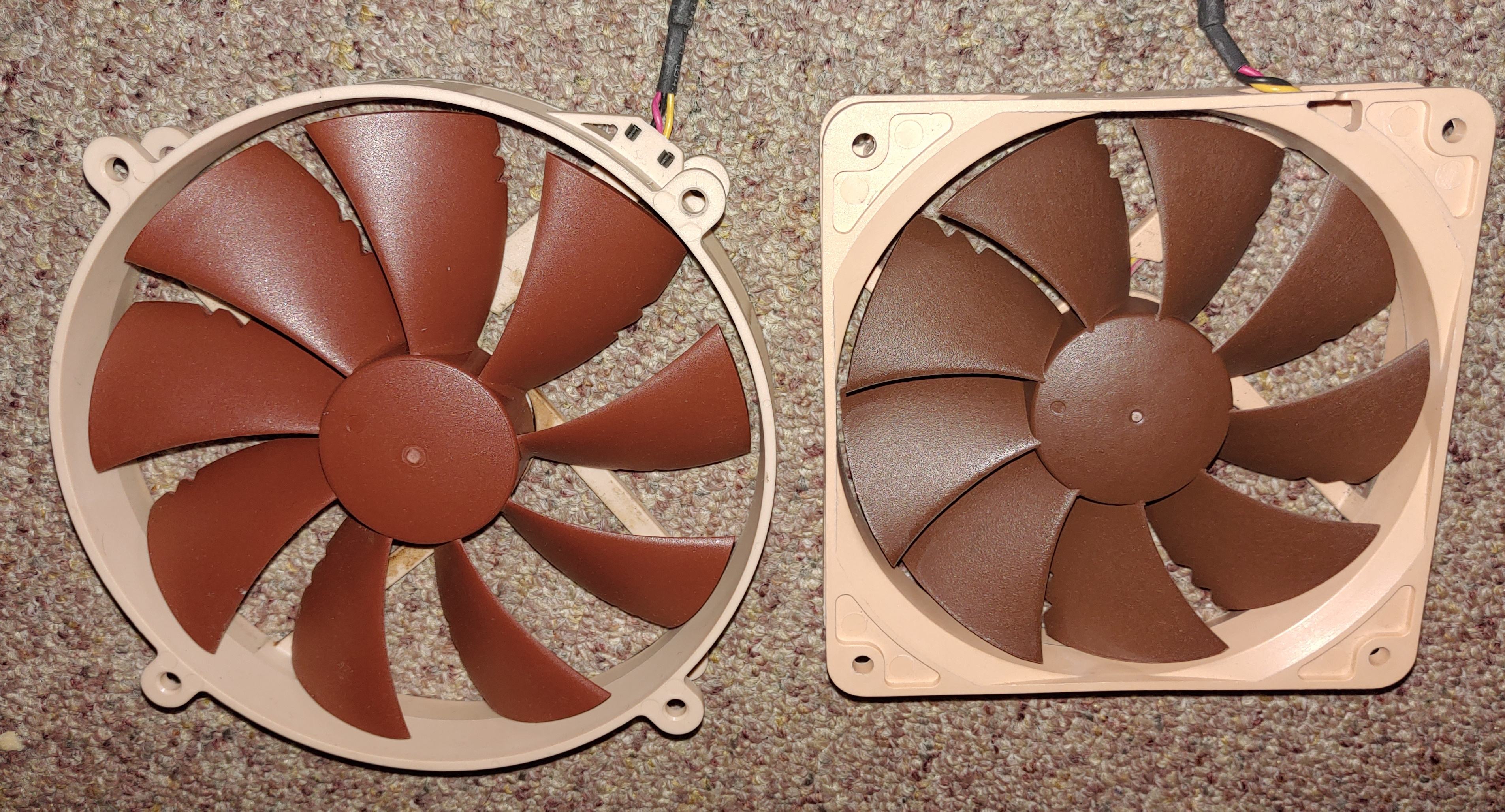Leuchtmist raus, Noctua rein? Ja die sind schon alt und ohne PWM, aber bisschen putzen und die laufen. (Leise)