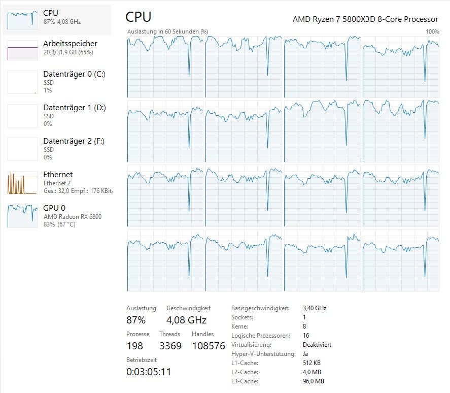 Meine Graka ist 340mm Lang. Und ich will eh relativ große Gehäuse, weil ich Platz habe, und mir mit dem Platz mehr Lautstärke erkaufen.