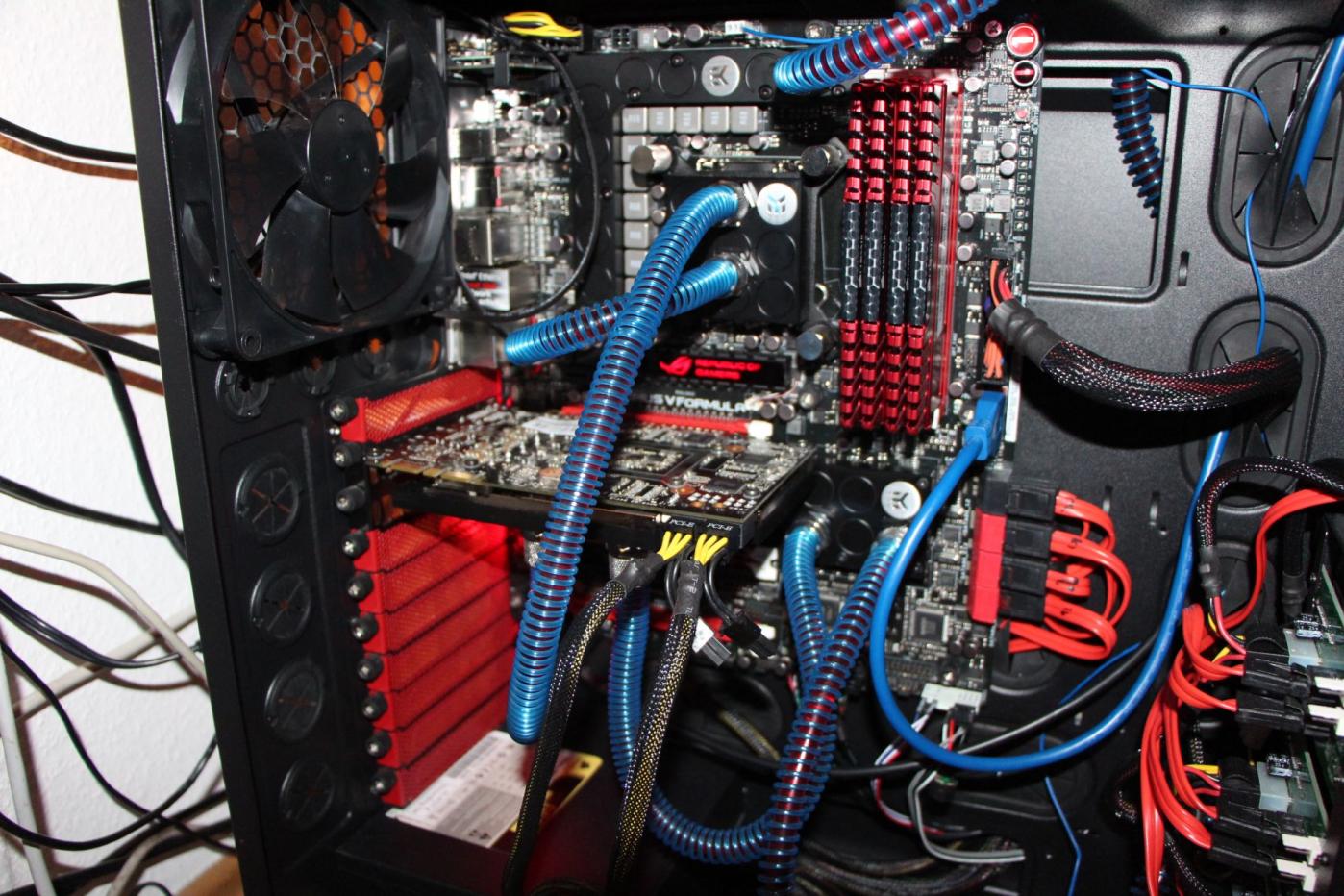 Ich hab heute mal alle Blöcke auf mein neues Board geschraubt. Morgen will ich noch den Heatspreader von der CPU trennen und dann kommt alles wieder in die Kiste.