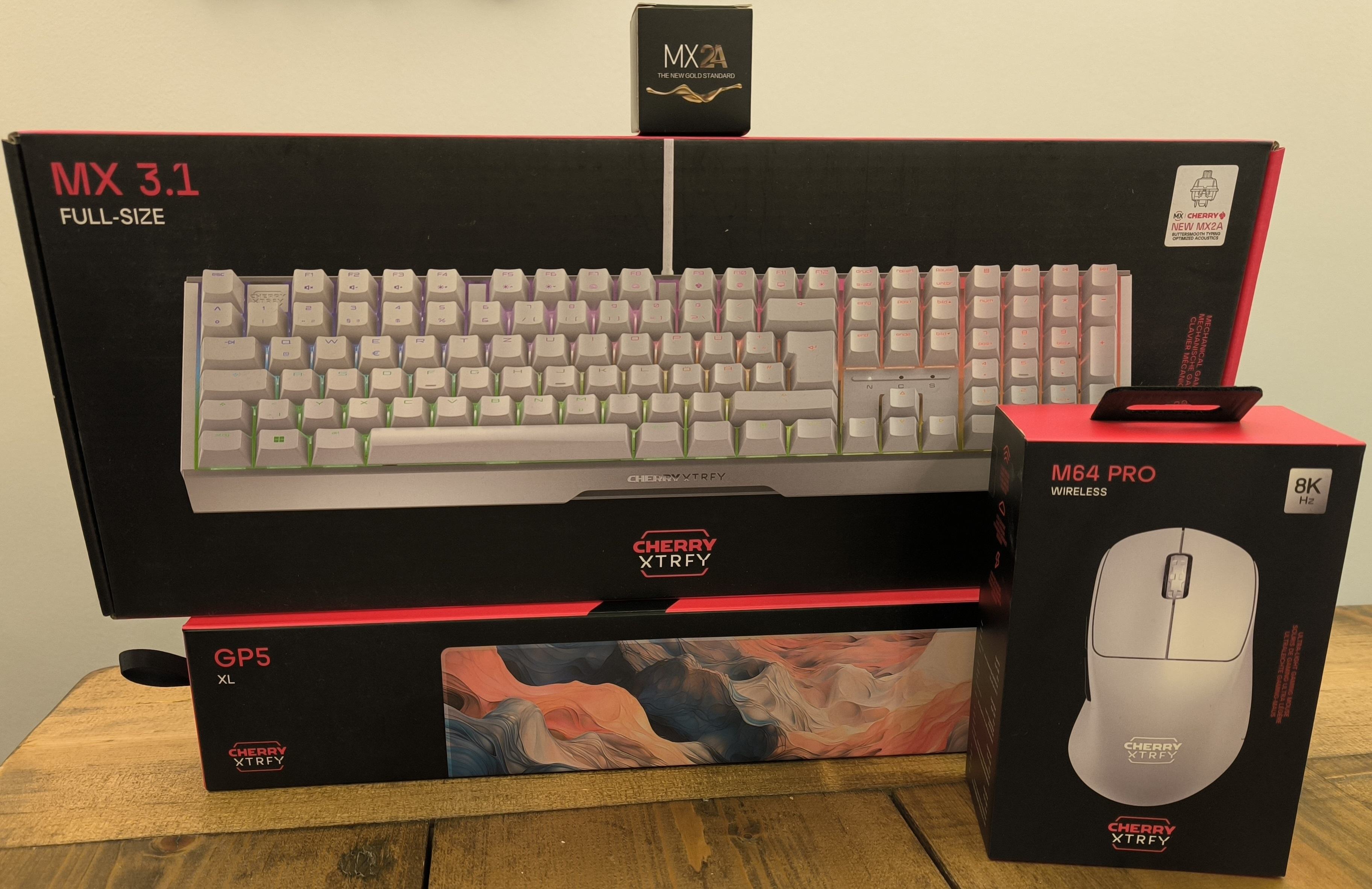 Natürlich habe ich in dem Paket die Tastatur CHERRY XTRFY MX 3.1 und Maus CHERRY XTRFY M64 Pro Wireless erwartet.