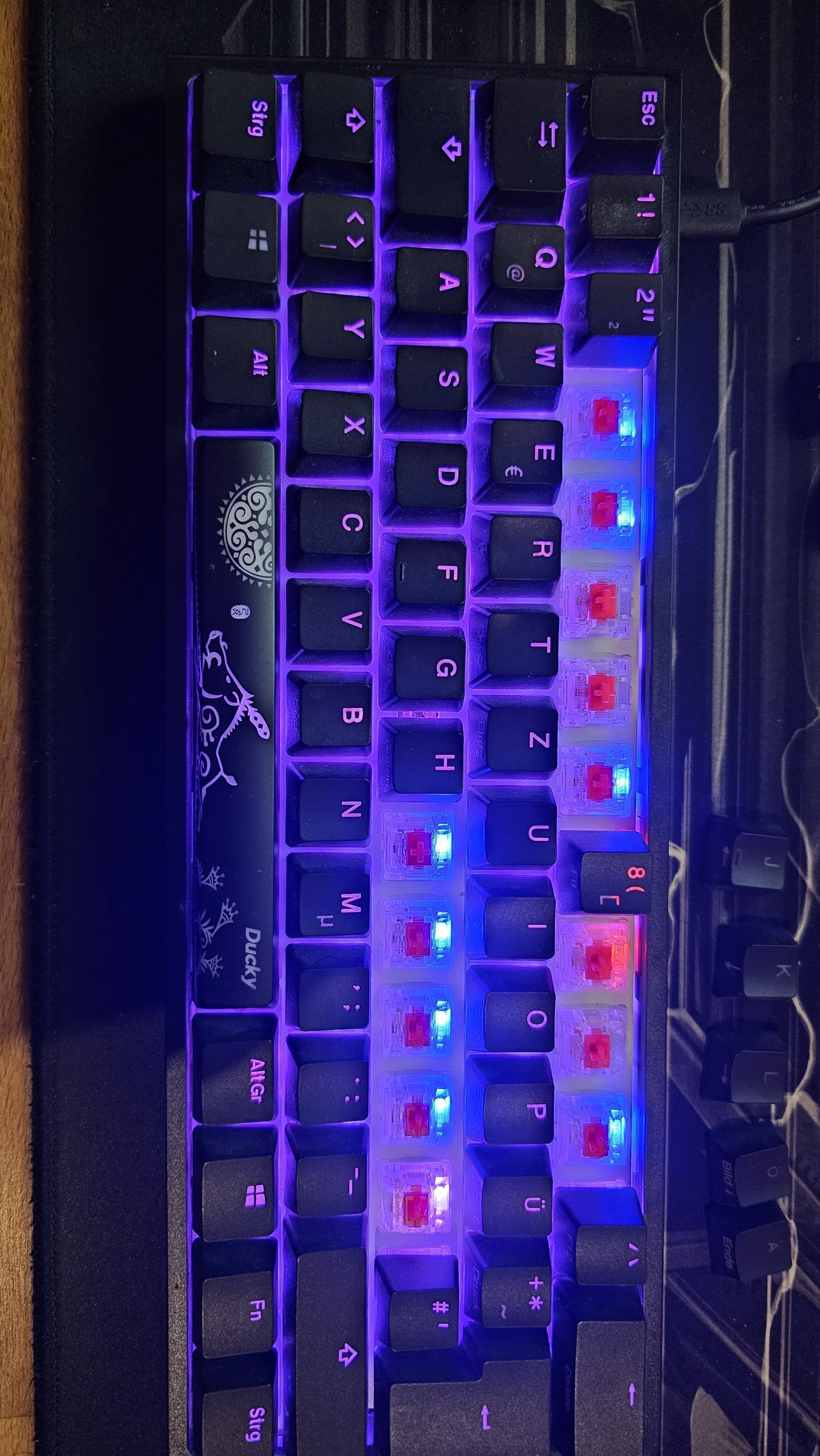 Mein Sohn hat sich eine 60% Tastatur gewünscht und ich habe ihm jetzt eine gebrauchte (laut VK 100% heile) Ducky one 2 Mini RGB mit Blue Switches gekauft.