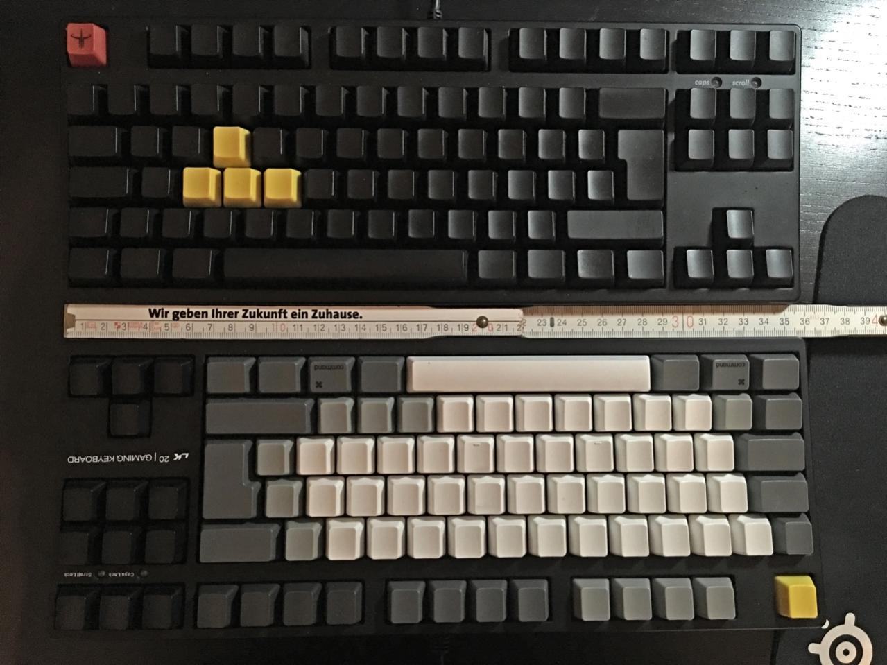 Habe jetzt mal auf den unteren beiden Reihen die Ducky keycaps drauf fyr den direkten Vergleich zu den Mk-caps.
