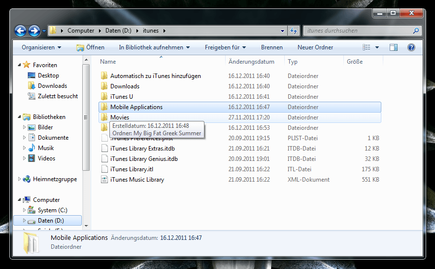 Ich hab mein Win7 neu aufsetzen müssen und hab zuvor einfach den iTunesordner mit allem gesichert.
