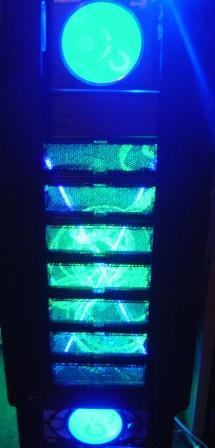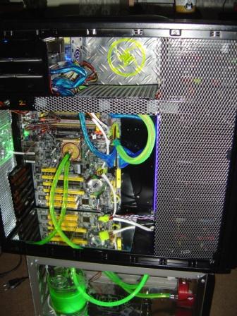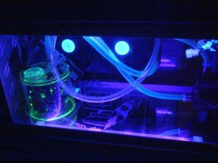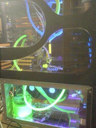 Das is mein TT Amor mit Aquabox drunter. In case und Box sind Speigelfliesen es sind insgesamt 6 uv kathoden. In der front befinden sich 2 LCD ein coolwathc und ein gatewatch. in der mitte habe ich 2 uv kathoden gekreutzt und mit neon strings umwickelt. Im inneren des casdes hab ich dünne drahtgeflecht platten eingestetzt.Hardware: AMD X2 4400+, 7800 GTX 512, DFI Lanparty SLI, 2* 512 MB Old BH5, 200 GB HDD. Aquamrk: 110000Punkte und Aquamark 11000.