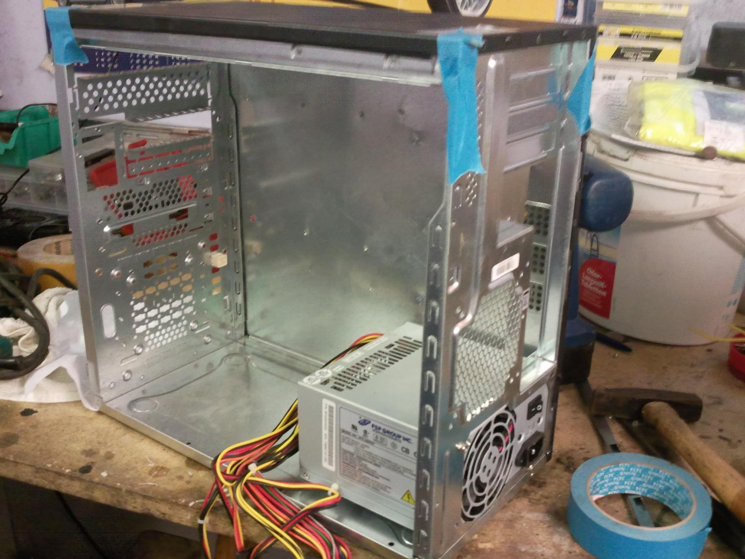 Sogleich hab ich auch das Motherboard reingesteckt und mit den vorhandenen abgetrennten halterungen die markierungen gemacht um dann alles zu verschweissen.