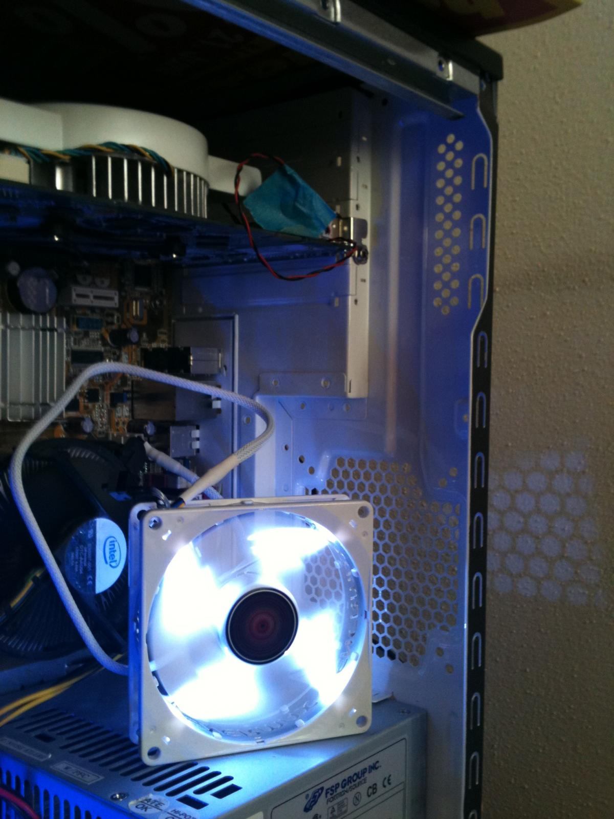 einen Enermax 92mm Lüfter in weiß mit weißen LED´s