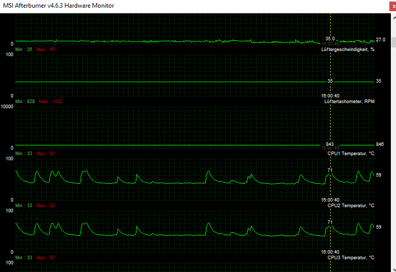 Kurze Antwort: Das ist das normale Verhalten des Prozessors. Das sind Temperaturspitzen, die über einen Zeitraum von Milisekunden erreicht werden.