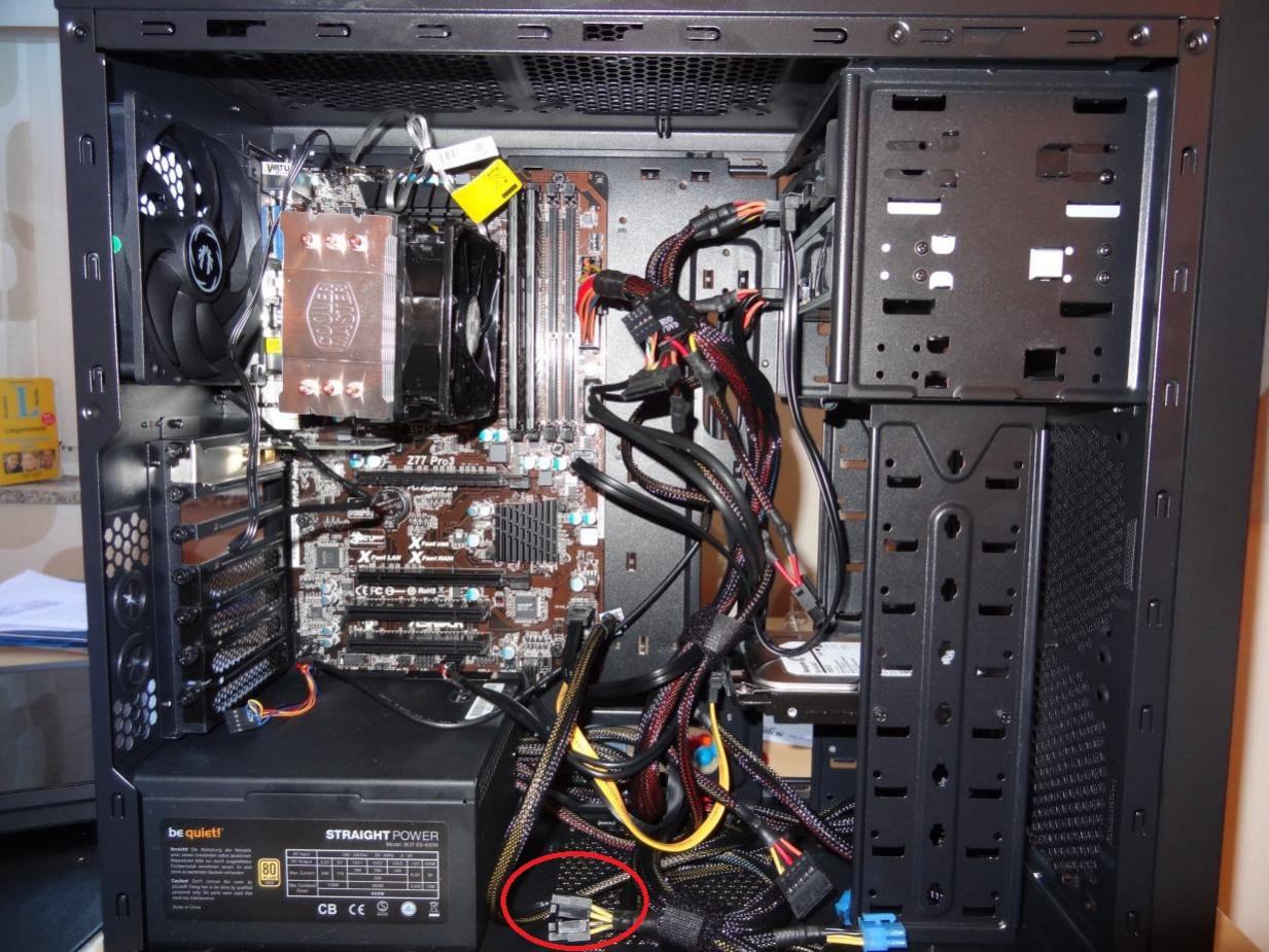 Müsste im ersten Bild ganz unten links vor dem Netzteil der schwarze 4+4-Polige sein.