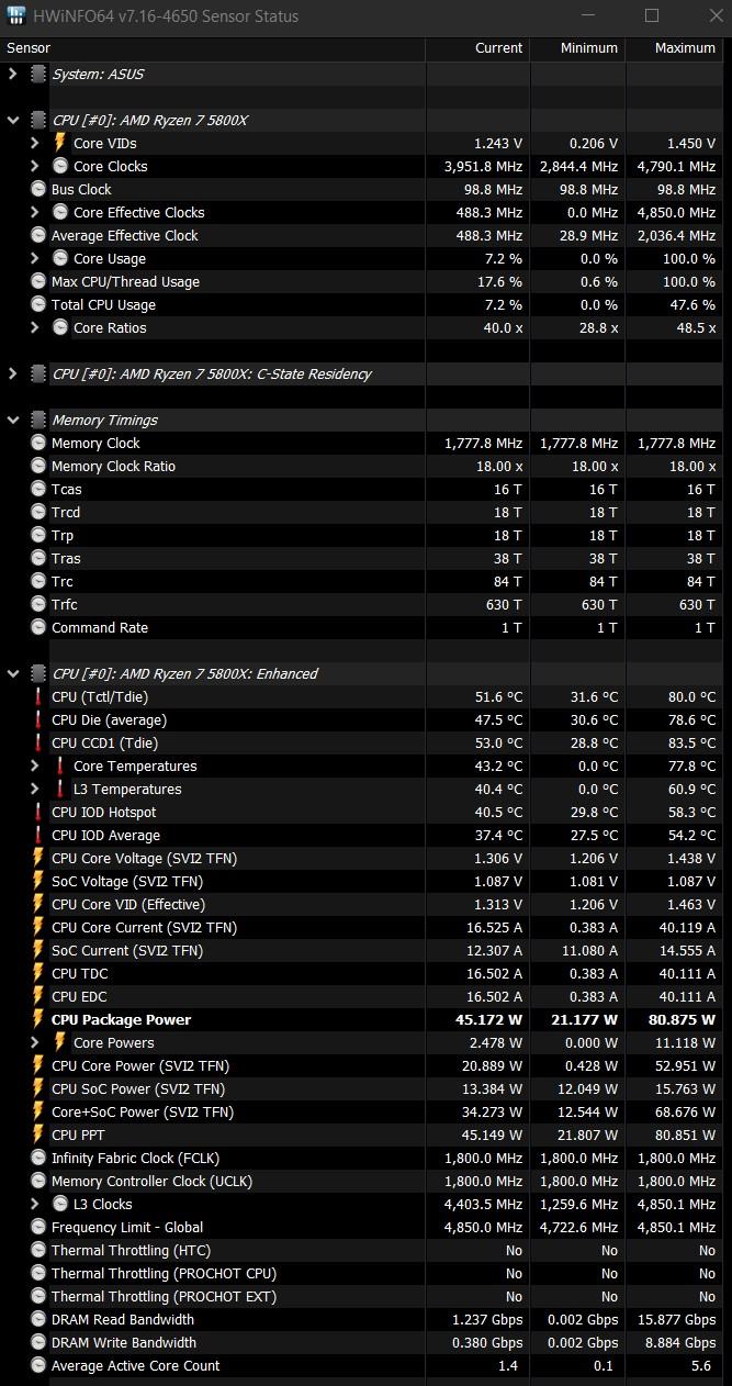 Ich habe im Bios bereits testweise andere Taktraten (bspw. 3.800 Mhz) eingestellt und die Spannung erhöht, aber das hat am Takt nichts verändert. Als ich den RAM vor Monaten eingebaut hatte, hatte ich stets "glatte" 1.800 Mhz anliegen (via Übertaktungs-Profil DOCP).