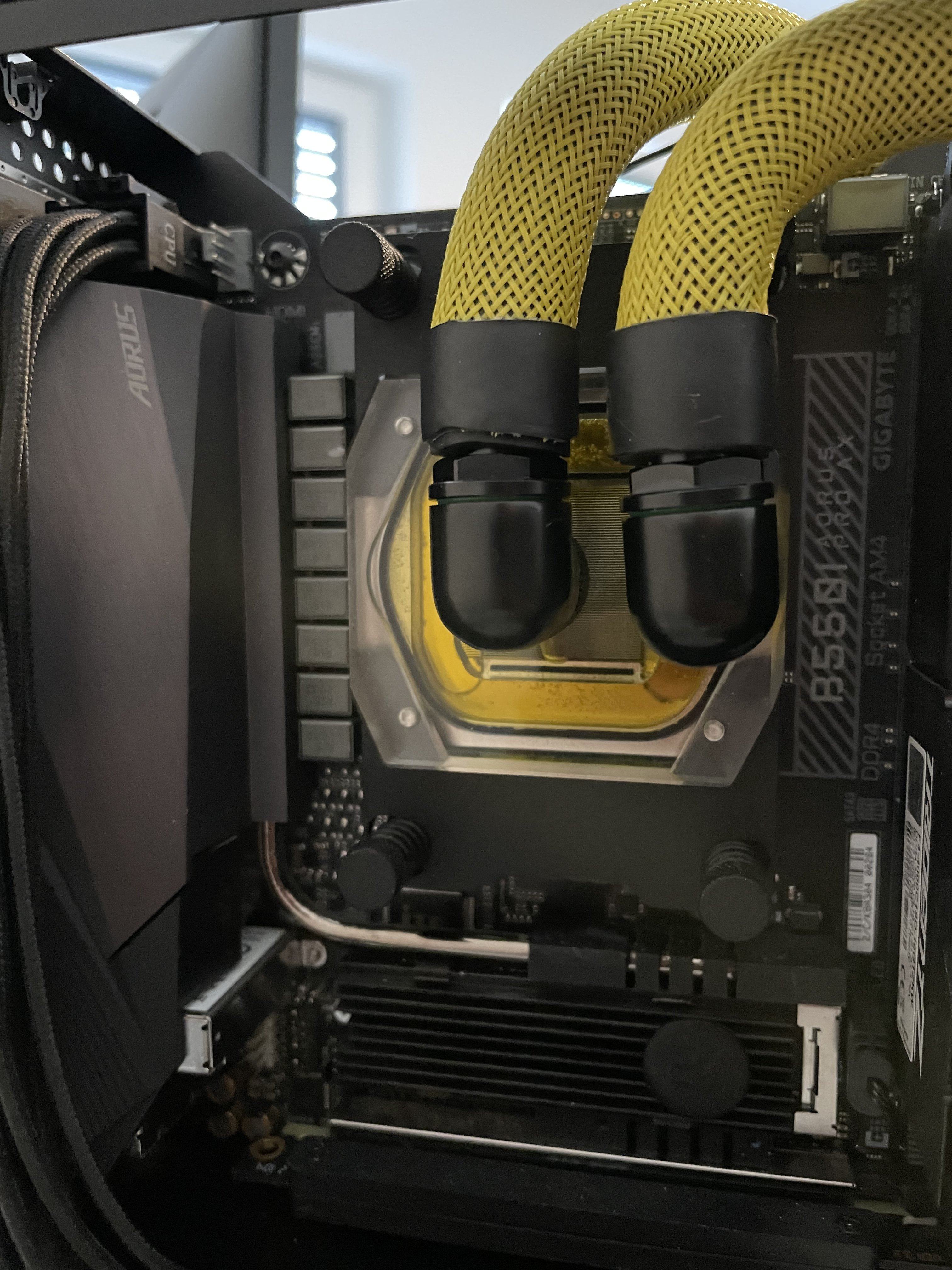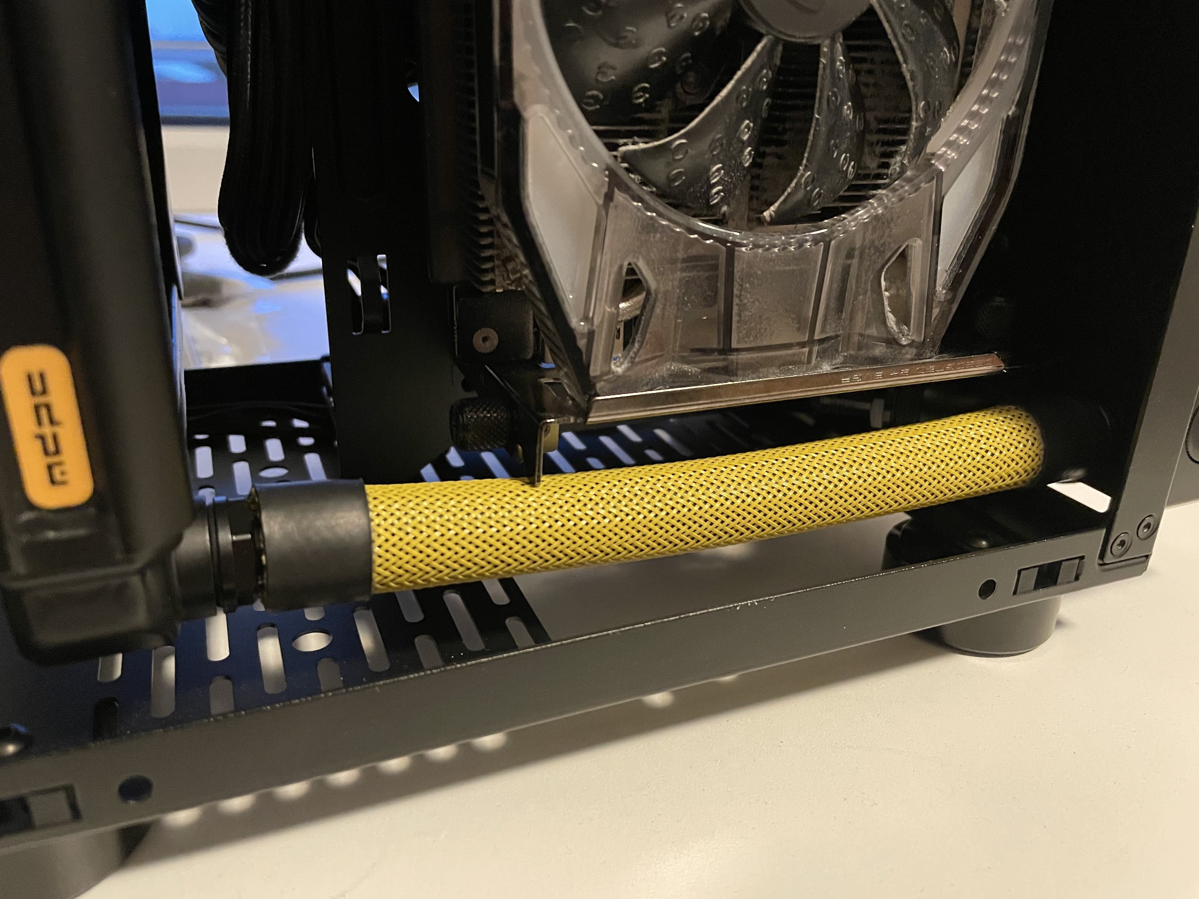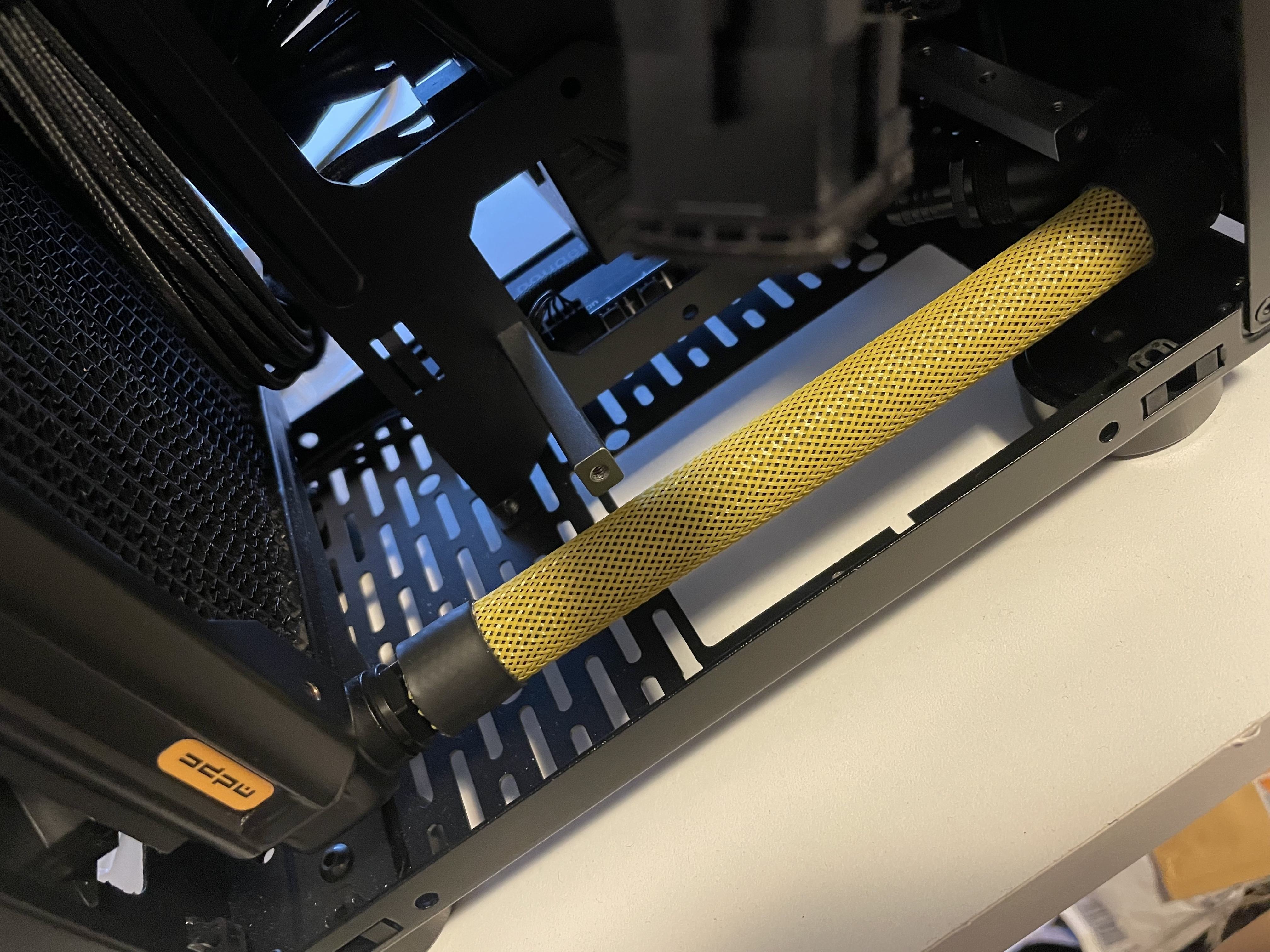 Da ich kein Fan von RGB bin, hatte ich mich damals für ein schlichtes Weiß entschieden und mir durch die ganze Sleeverei mal direkt ne Faser in den Kreislauf geholt, welche am Ende in der Jet-Plate des GPU-Kühlers landete :d