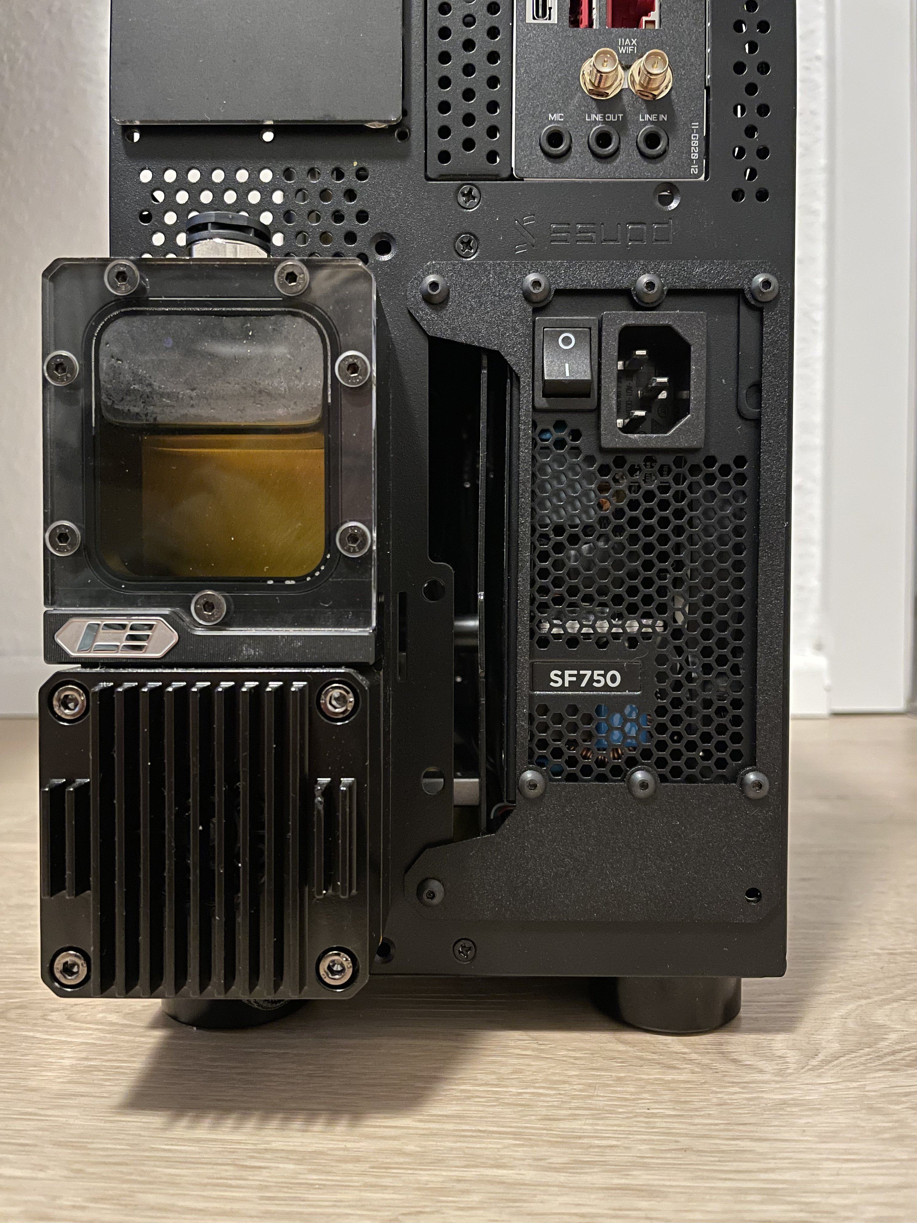 Das SF750 bekam ein Noctua NF-A9x14 HS Lüfter und wurde vom Lüftergitter befreit.