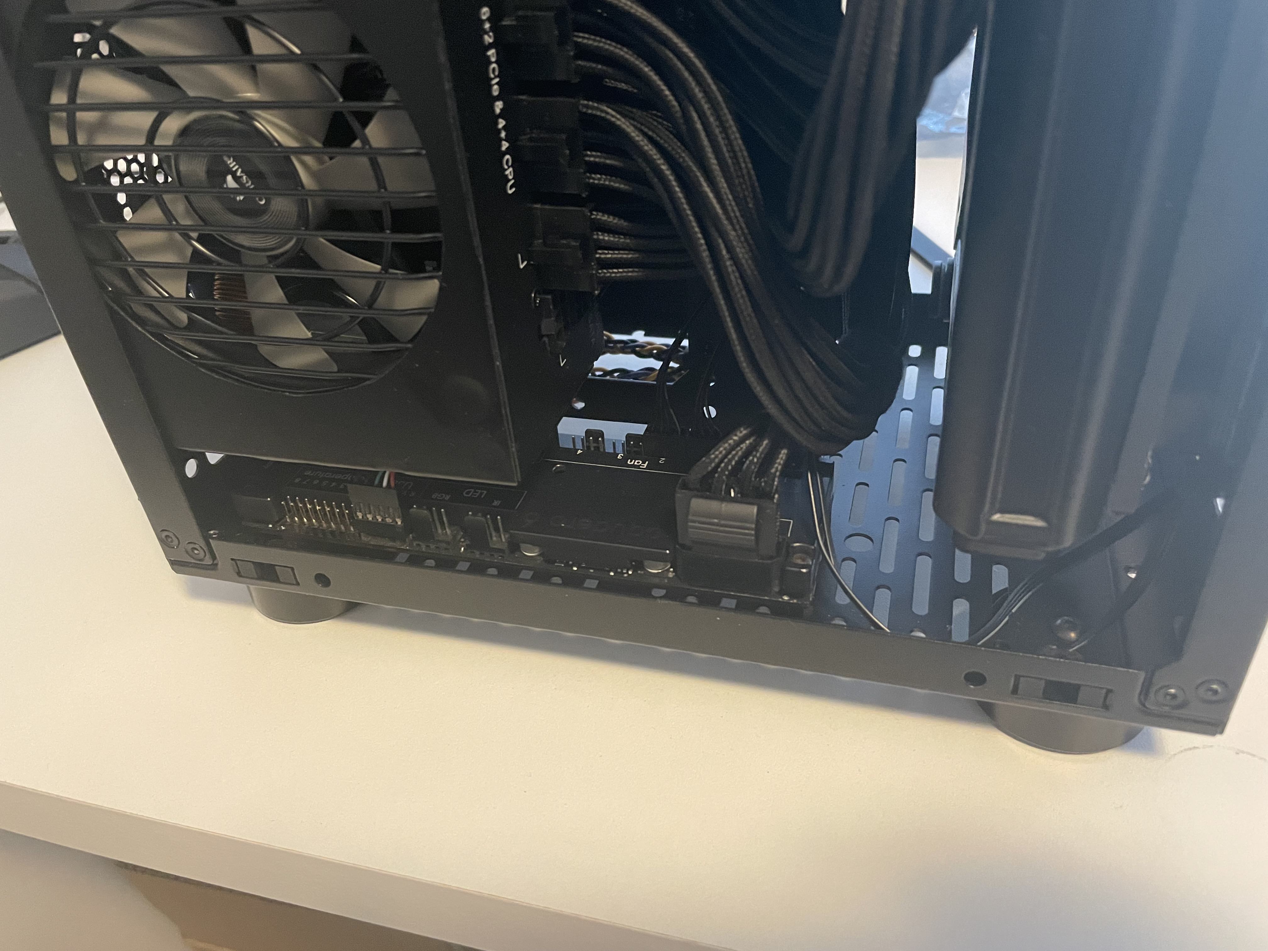 Die Original Netzteilblende wurde so gedreht, so dass das Netzteil höher sitzt und der darunter verbaute Aquero genug Platz hat