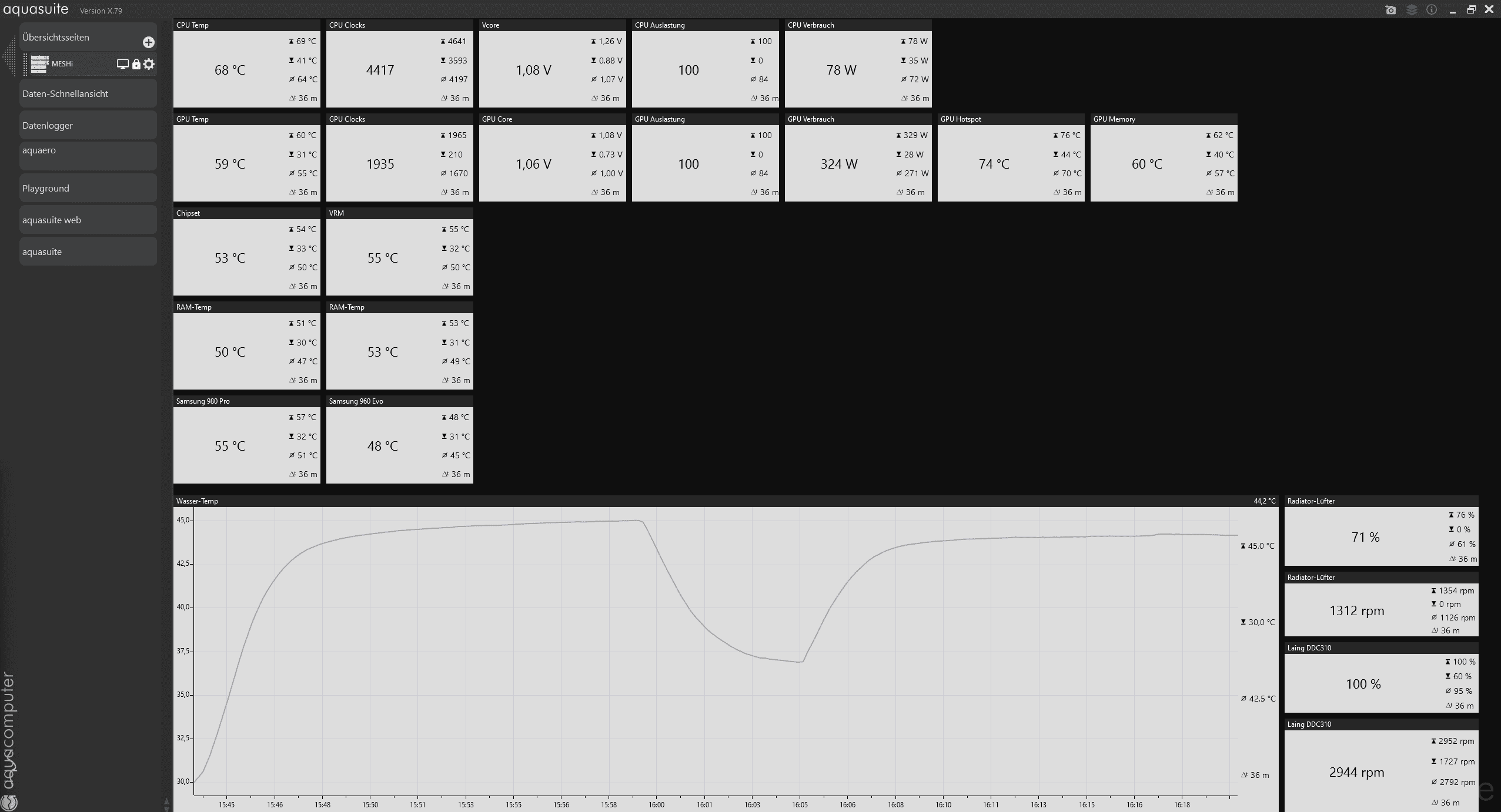 Mal sehen ob ich mit ein paar BIOS-Einstellungen da noch was machen kann und ob der Fullcover-Kühler da anders performt.