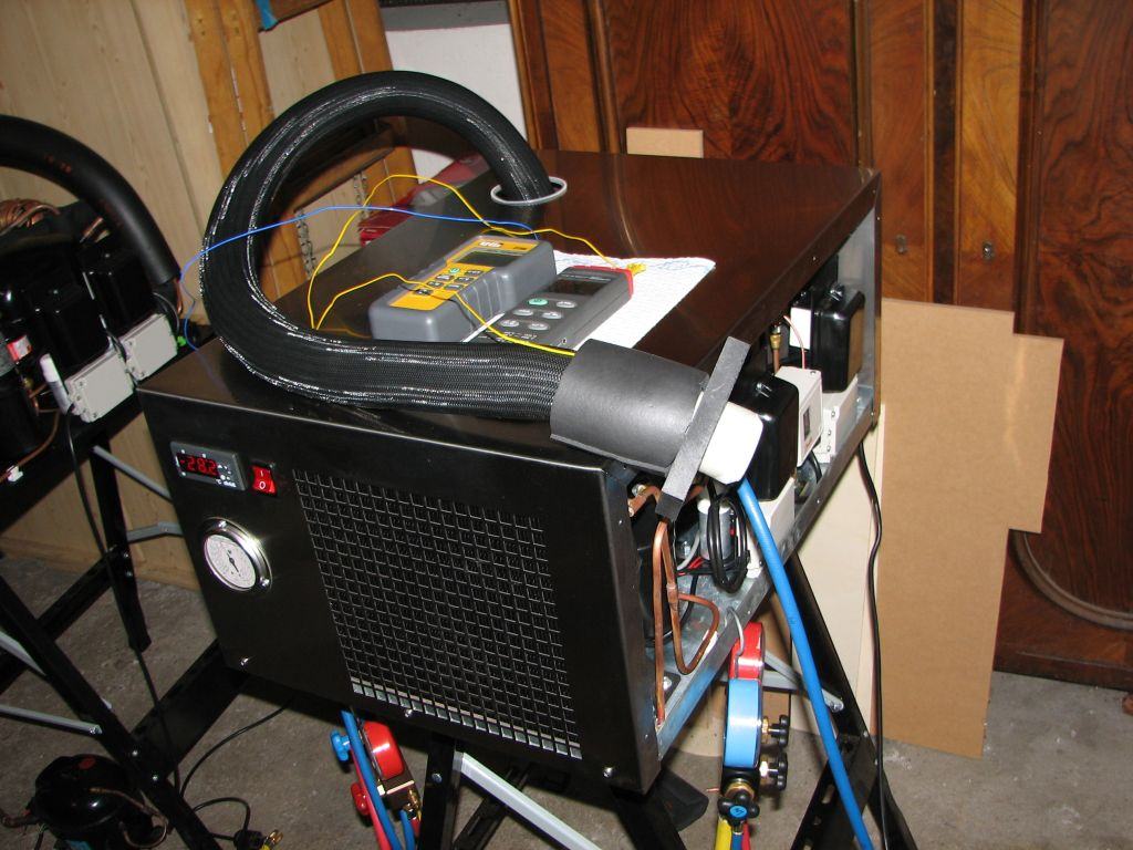 Leider gibt es keinen Temperaturfühler mehr für die erste Stufe und der Digitalanzeige an der Front traue ich nicht, weil diese schon direkt nach dem Anschalten bei Raumtemperatur 4°C anzeigt.