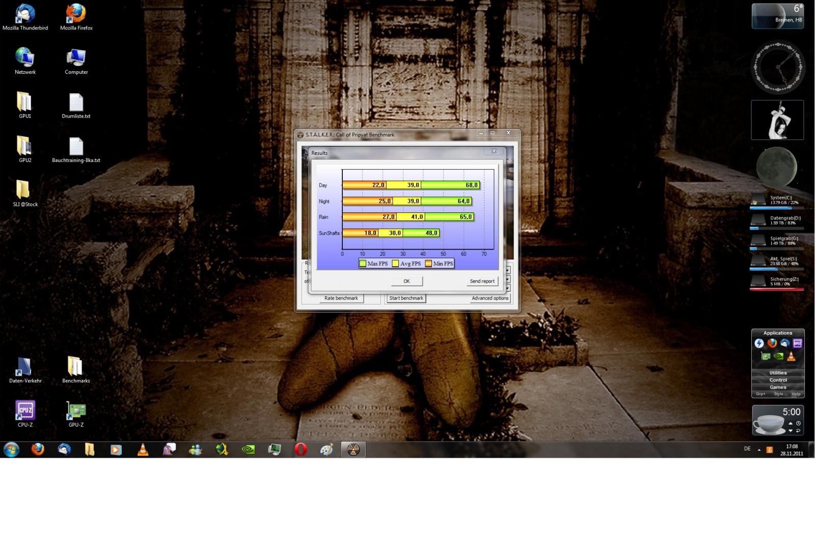 ich hab gestern auch mal Metro getestet. Mit zwei 470ern mit OC (grob 570GTX Stock Leistung)