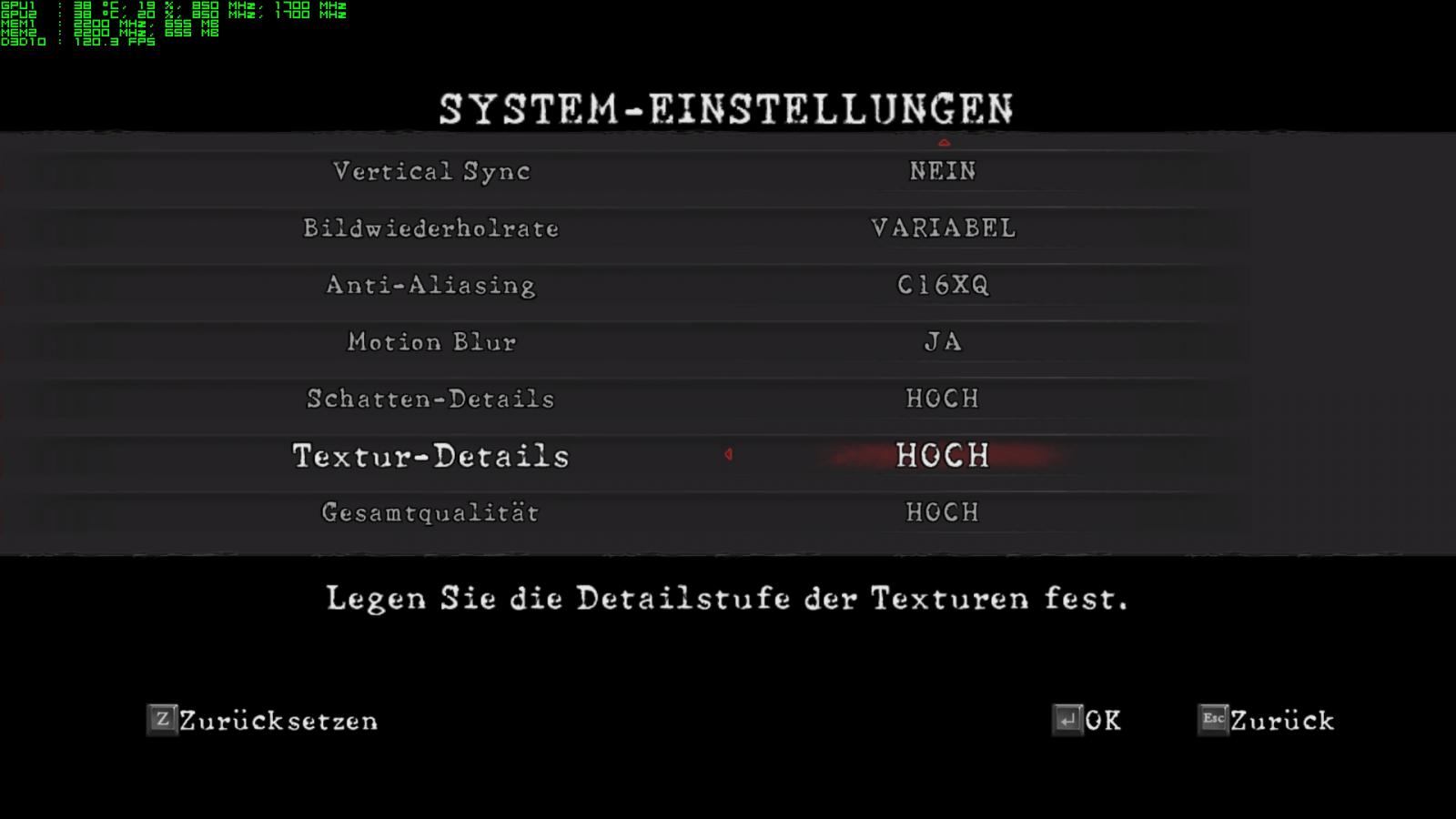 Resident Evil zieht zumindest nicht so viel V-Ram. Es muss also irgendwas anderes sein, aber nur zur Kontrolle am besten auch dort nachschauen