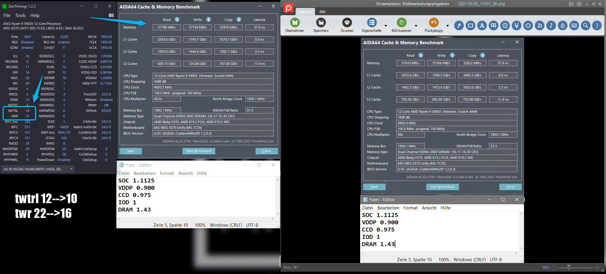bin jetzt auf tWR 16 @1,40V Vdimm. Karhu macht nun 168MB/s statt 164MB/s