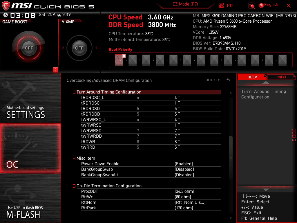 RTTWr hatte ich auf 80 Ohm (RZQ/3) auch laut "Ryzen DRAM Configurator" manche schalten es aus "Disable"