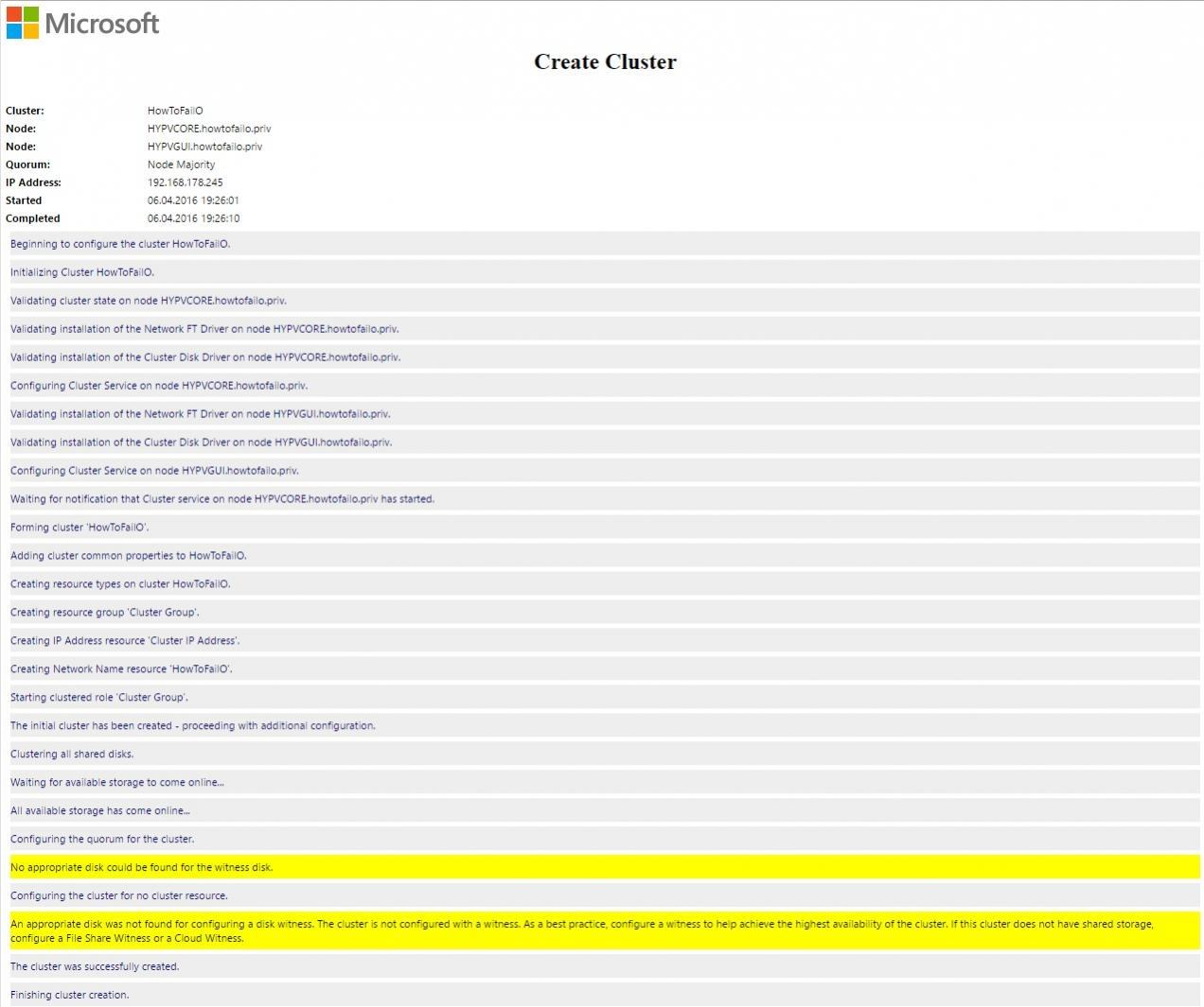 Am Ende werden wir dann begrüßt von der begehrten Meldung, dass wir erfolgreich eine "HIGH AVAILABILITY" VM erstellt haben: