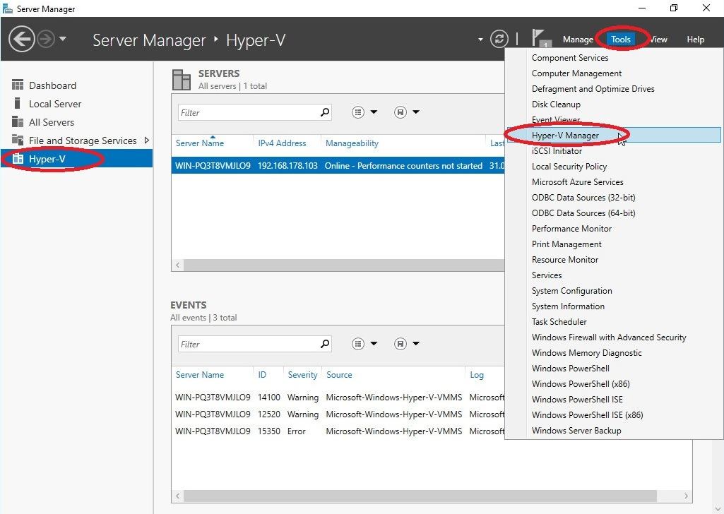 HYPVCORE ist der Hyper-V Host, den wir in HowTo 1 erstellt haben.