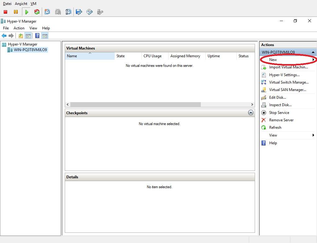 hoch verfügbaren virtuellen Maschine hier genauso wie im HowTo1 für den Hyper-V Manager beschrieben. Es gibt nur drei Besonderheiten am Beispiel einer "frischen" VM: