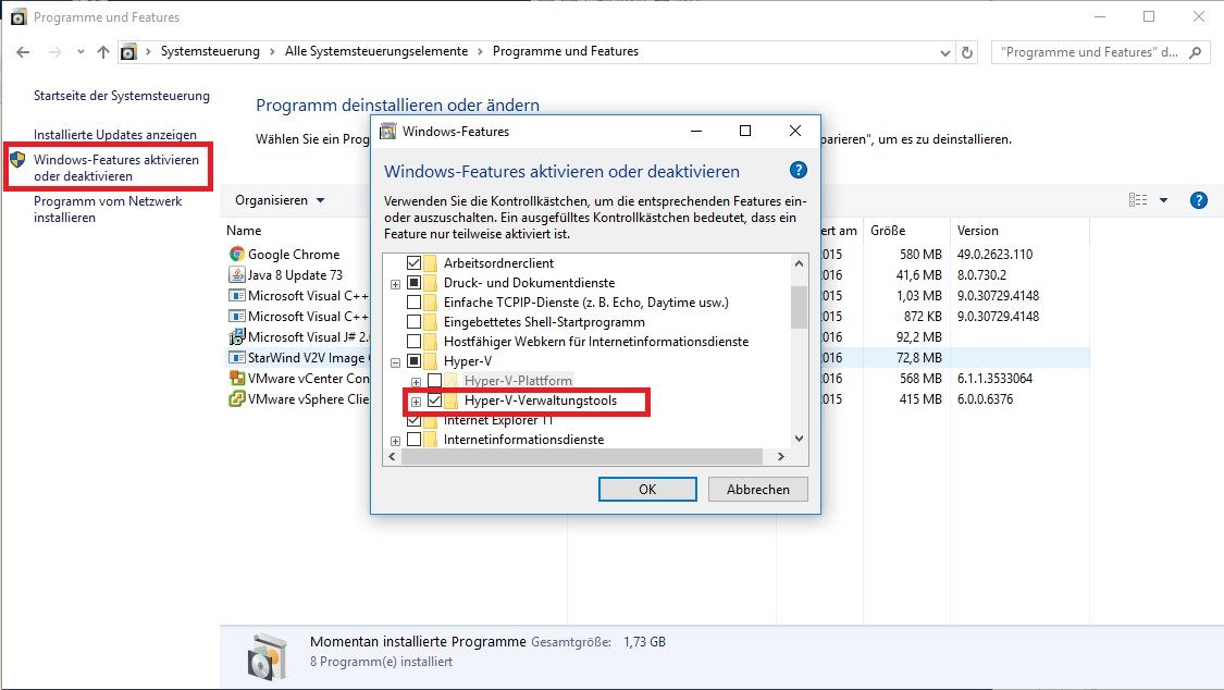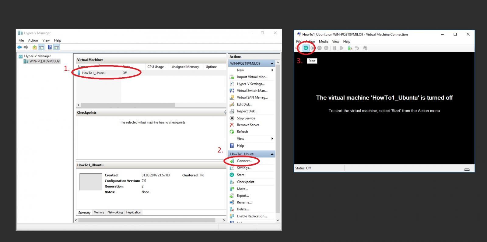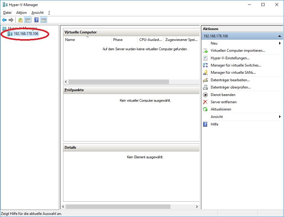 HYPVGUI ist der Hyper-V Host, den wir in HowTo 2 erstellt haben.