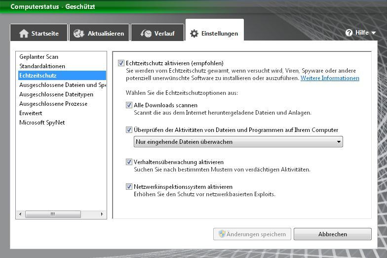 In Einstellungen/Echtzeitschutz kann ich unter "Überprüfen der Aktivitäten von Dateien und Programmen auf Ihrem Computer" folgendes auswählen: