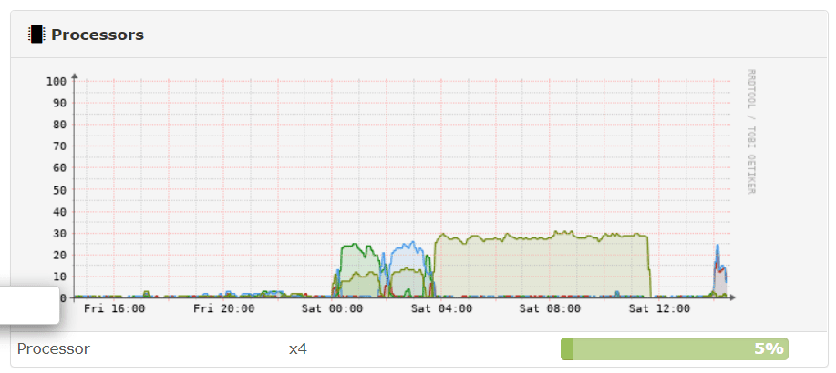 Soweit so gut, ich bekomme jetzt auch alle Connections / Pakete markiert und die Mangle Rules und Queues springen an, mir ist aber aufgefallen, dass mit aktivem QoS die CPU vom Rb5009 ziemlich am kotzen ist, hier der Bereich von kurz vor 04:00 bis kurz vor 12:00.