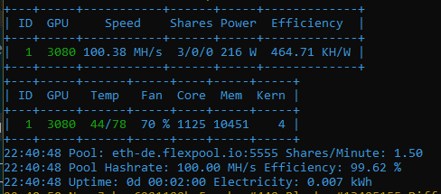 Unter Hive ging die nur mit 31.x MH/s und ist dauernd mit LHR Lock detected abgestürzt. Unter Windows irgendwie kein Problem...