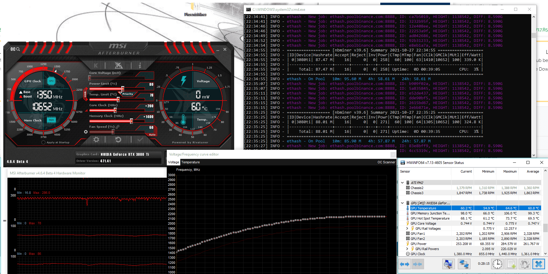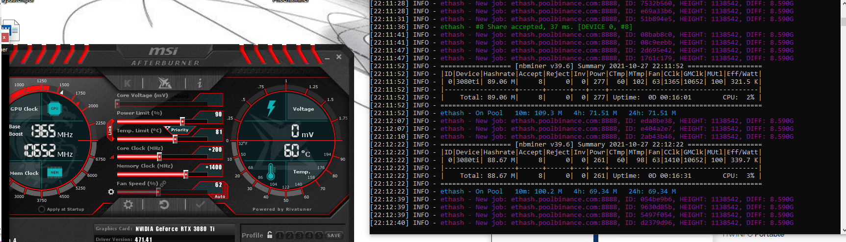 Aktuell ist also die 3080 Ti meiner Meinung nach also die bessere Karte zum minen und zum gamen. Dafür ist sie aber auch etwas lauter.
