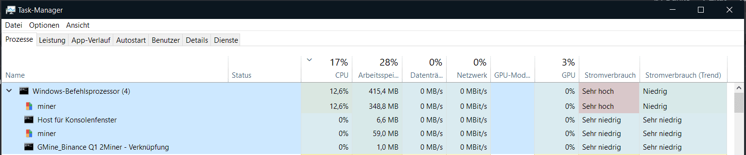 Starte ich den Miner nur mit der integrierten AMD-Grafikkarte (der CPU) dann ist die Auslastung bei unter 1%.