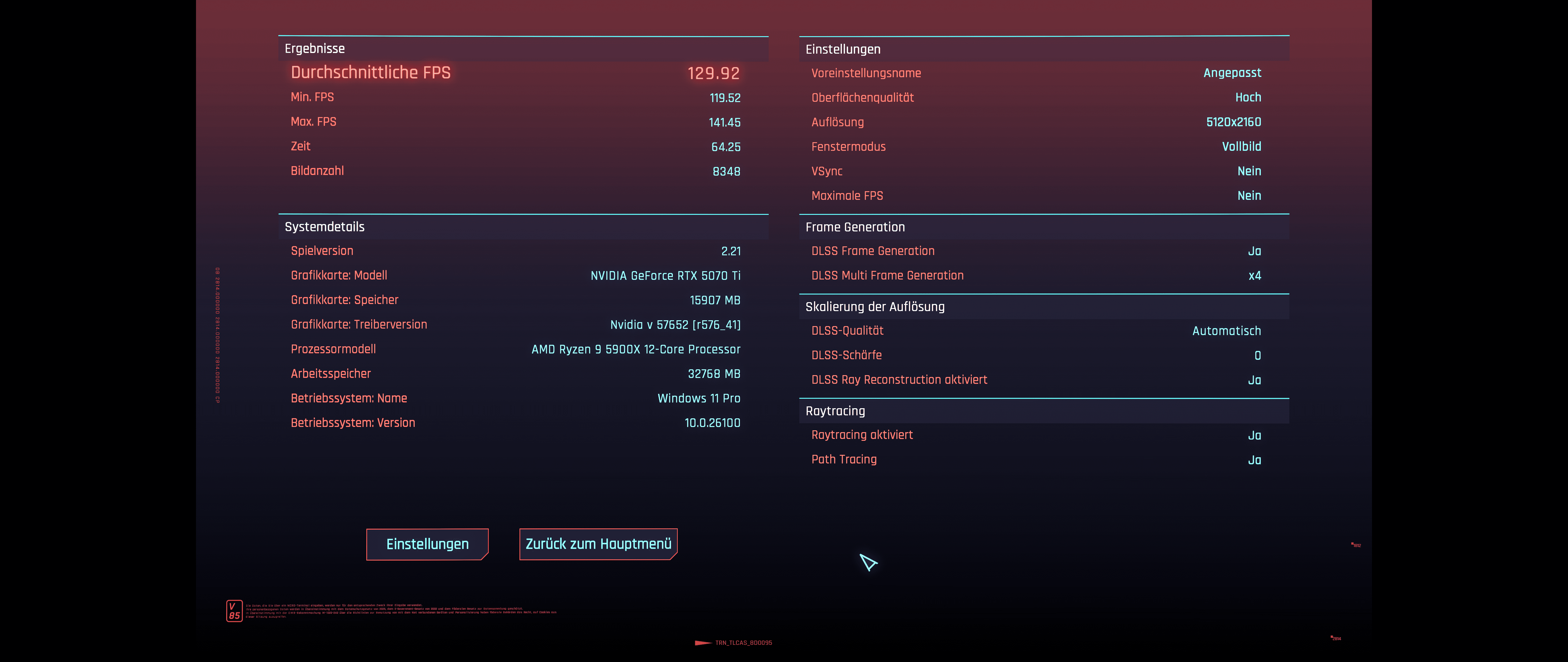 Stelle mir das gerade nicht so prickelnd vor mit einer 5070Ti und hohen Details, selbst mit MFG und DLSS Performance.