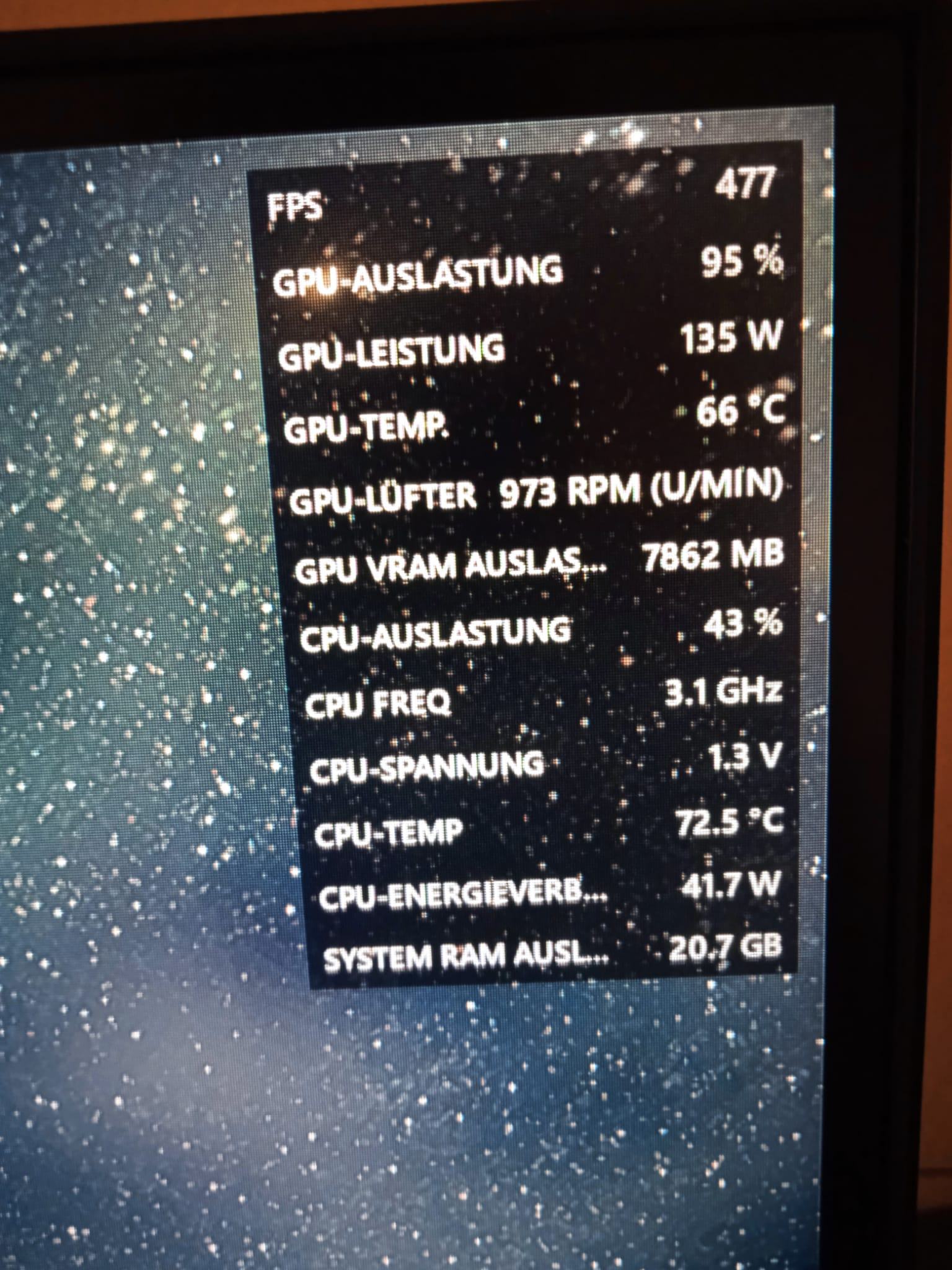 2. Ich will nicht nur viel fps, ich will es auch Silent. Daher laufen meine GPU & CPU Lüfter auch mit so wenig rpm wie möglich.
