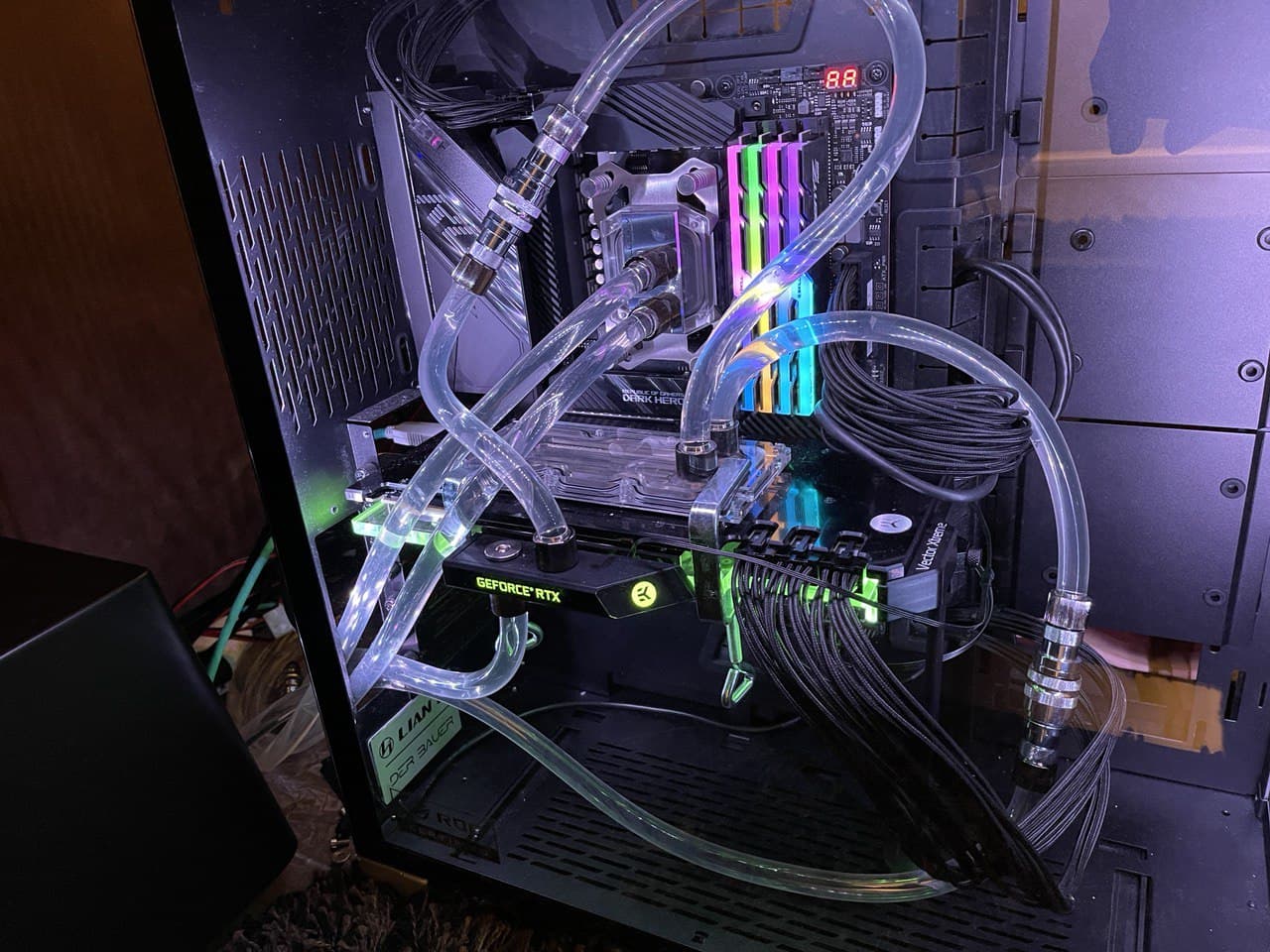.Habe mich nach X-Jahren nun endlich mal wieder an eine Wakü getraut, da mir die Lautstärke meiner RTX3090 (STRIX 480W BIOS) und meines 5950X (OC mit Asus Rog Dark Hero) wirklich zu viel wurde unter Luft/AiO...