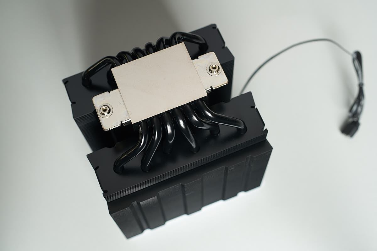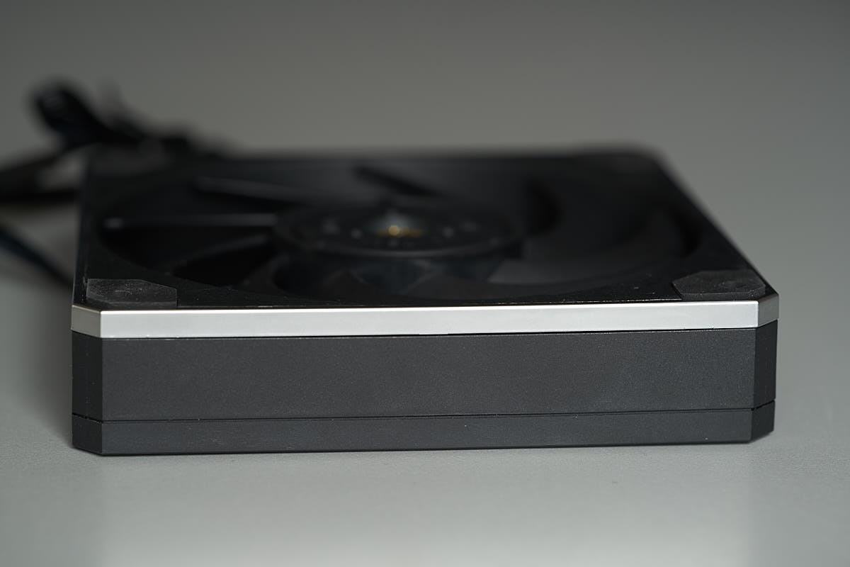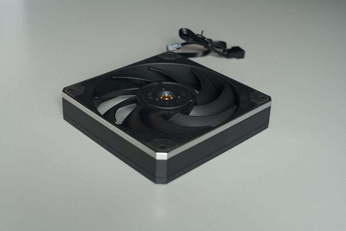 Dem Kühler liegen zwei Metal 120 Lüfter bei, deren herausstechendes Merkmal der Aluminiumrahmen an der Vorderseite des Lüfters ist. Optisch erinnern mich die Lüfter an eine weitere Interpretation des Gentle Typhoon, wie z.B. auch die Noctua A12x25. Die Anschlusskabel sind mit 35cm für einen CPU-Kühler als ausreichend lang und haben, ähnlich zu Arctics PST Lüfter, ein y-Kabel direkt in das Lüfterkabel integriert. Die Minimaldrehzahl der (am Kühler montierten) Lüfter beträgt 1050-1060rpm und mit low Noise Adapter etwa 950rpm. Dies weicht deutlich von der angegebenen Minimaldrehzahl von 800rpm mit 10% Toleranzspielraum (also 880rpm) ab, die bereits ohne den Low Noise Adapter erreicht werden sollten. Wobei die Lüfter auch mit Low Noise Adapter noch deutlich oberhalb der angegebenen Minimaldrehzahl laufen. Die angegebene Maximaldrehzahl wird mit 1970-1980rpm ohne den Low Noise Adapter erreicht, mit Low Noise Adapter verringert sich die maximale Drehzahl auf etwa 1450rpm.