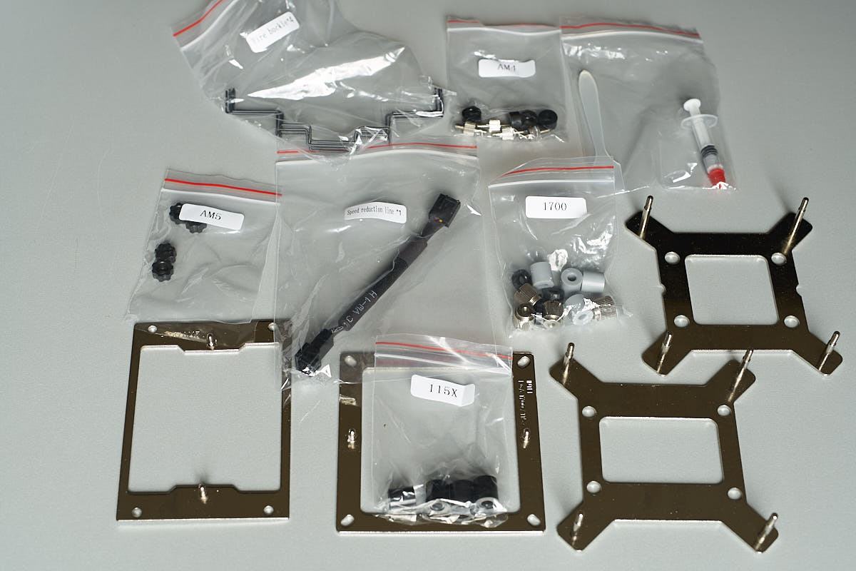 An Zubehör ist für die angegebenen Sockel Alles notwendige Montagematerial vorhanden. Interessanterweise hat man sich bei Montech dazu entschieden eine (Metall)Backplate für Sockel 115x/1200 und eine separate für Sockel 1700 beizulegen, statt beides in eine Backplate zu vereinen, wie es oftmals gemacht wird. Funktional hat das keinen Nachteil und die beiliegenden Backplates aus Metall haben mehr als ausreichend Stabilität. Es liegt auch eine kleine Spritze mit Wärmeleitpaste bei, deren Menge für 1-2 Montagen problemlos ausreichen sollte und ebenfalls ein kleiner Spatel zum Verstreichen der Wärmeleitpaste, was ich begrüße und so bisher noch bei keinem anderen Kühler gesehen habe.