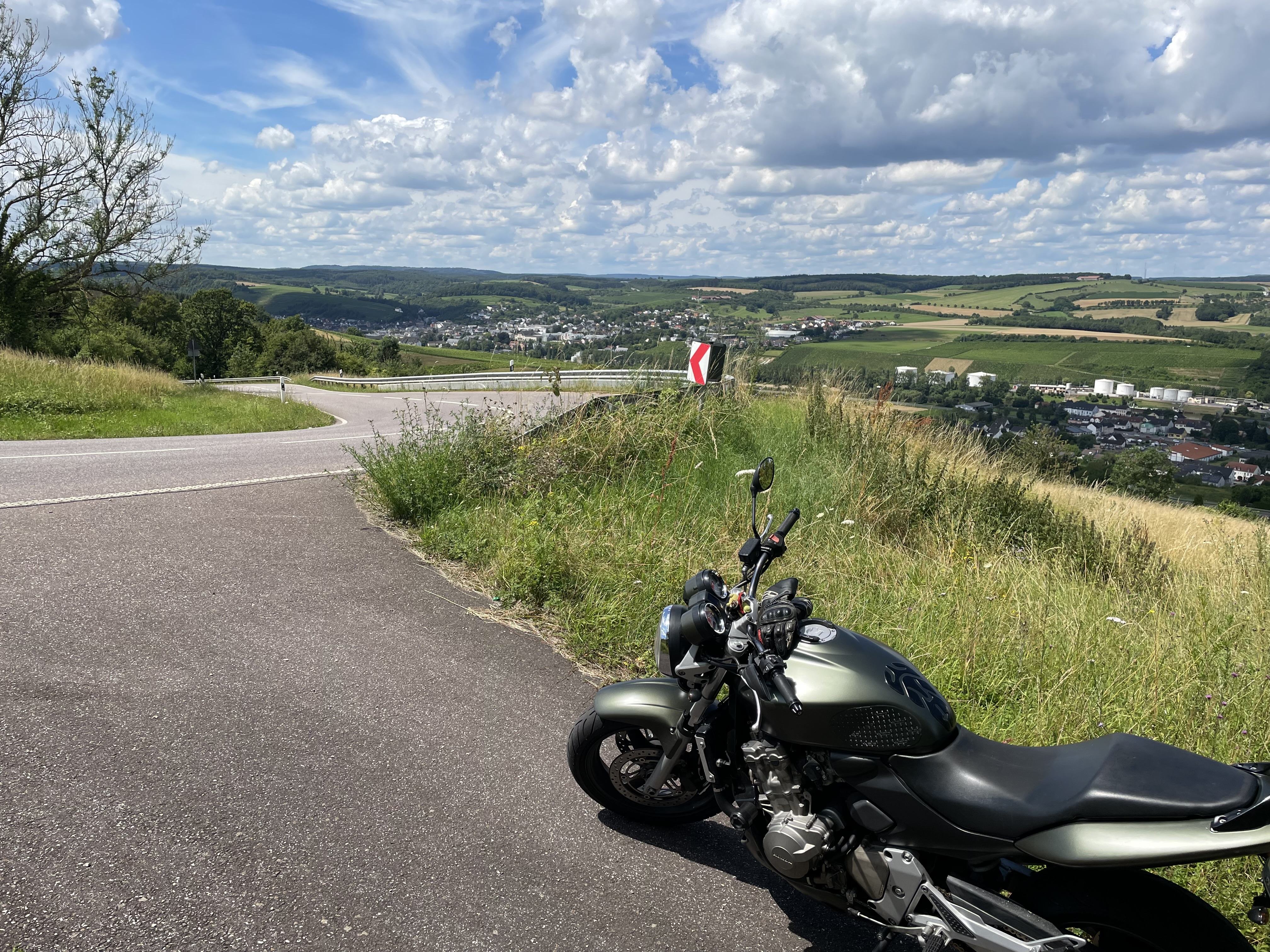 Nach ein paar kleinen Reparaturen und Lederpflege am Samstag, bin ich gestern eine kleine 2h Runde gefahren und habe bei einer Pause auch einigen Fahrern beim Kurvenüben zugeschaut ;)