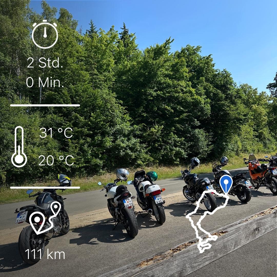 Heute schon um ab 9:00 los. Vormittagsrunde Richtung Diemelsee, dafür jetzt wieder daheim und mit kurzer Hose im Schatten.