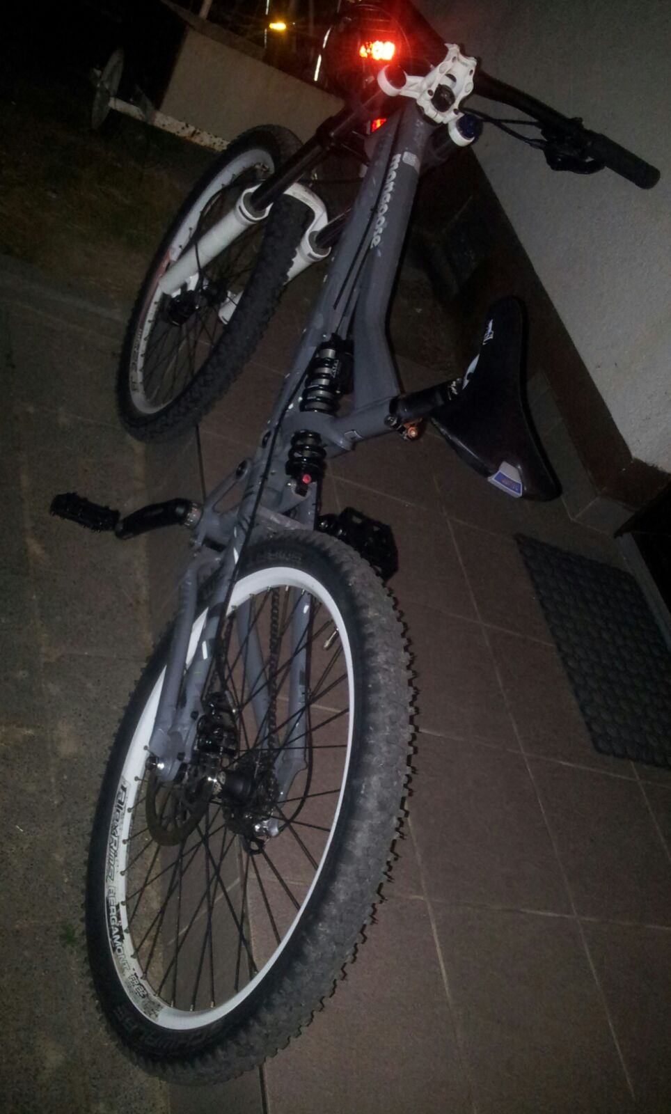 Magura MT5 4 Kolben Anlage vorn und hinten, 203er Scheibe vorn 180er hinten. paar Ritchey Gummigriffe, Paar Alexrims FR32 mit Tattoo Nabe ( is wohl Veltec ) paar SunRims RhynoLite mit Formula Nabe, paar Sunrims SingelTrack SL1 mit Veltec Nabe. Morgen kommen die restlichen Teile alle mit der Post, Die RockShox Gabel hat grad frisch nen Service bekommen für 100€ genauso wie der Fox daempfer, das einzige was ich noch machen muss ist neue Lagerschalen einzupressen.