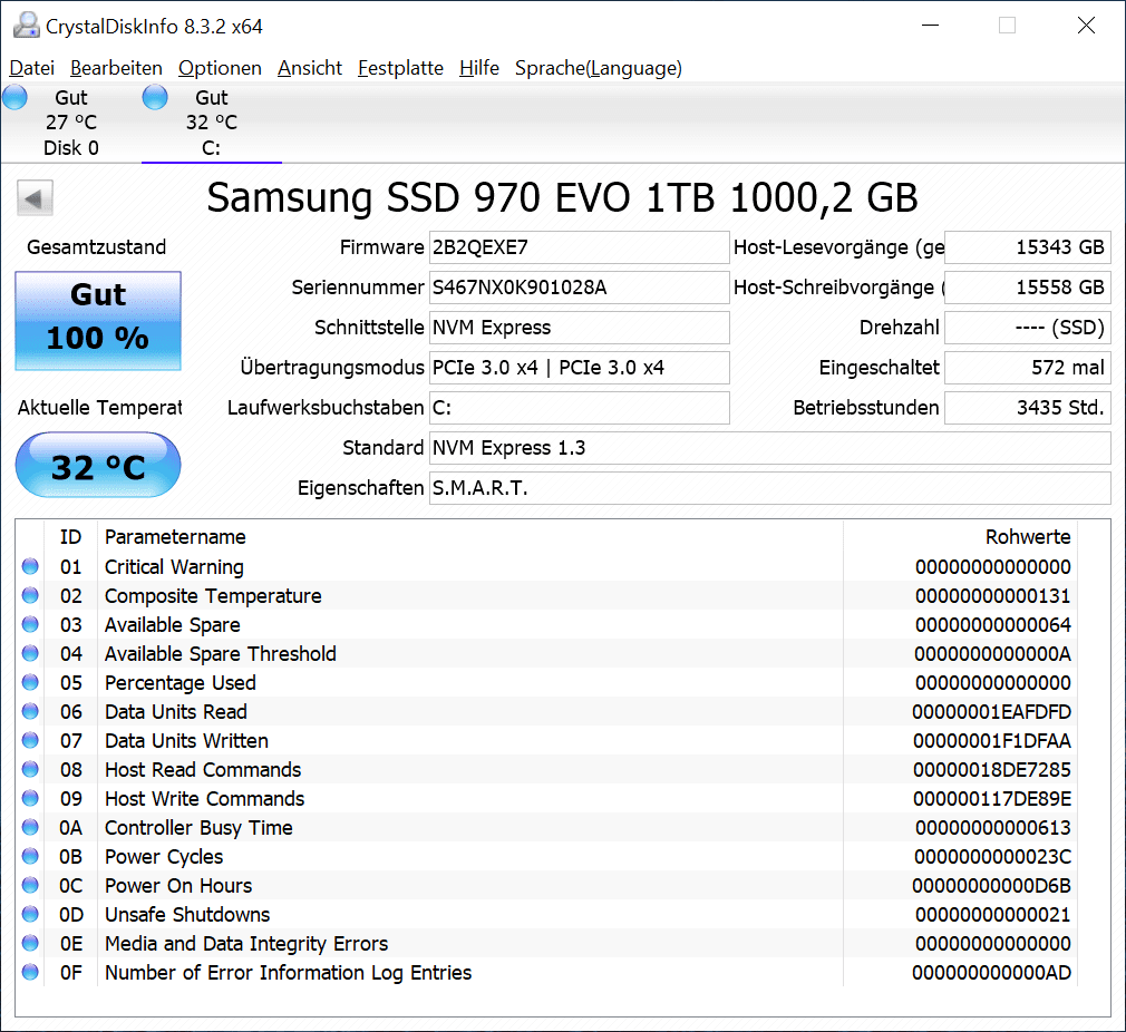 Mh, bin grade dabei den Kühler zu wechseln bzw, erst mal kurz die CPU aufwärmen damit der Boxed Kühler überhaupt heruntergeht :) Wurde dabei dann gleich mal wieder von der Windows Repair Option beim Booten begrüßt. So ganz prinzipiel, scheint er ein wirkliches problem mit meiner Samsung 970 Evo zu haben. Hab jetzt mal ein Screenshot der Smart werte gemacht. Für mich sehen die aber alle in Ordnung aus, möchte aber mal andere Meinungen dazu hören.