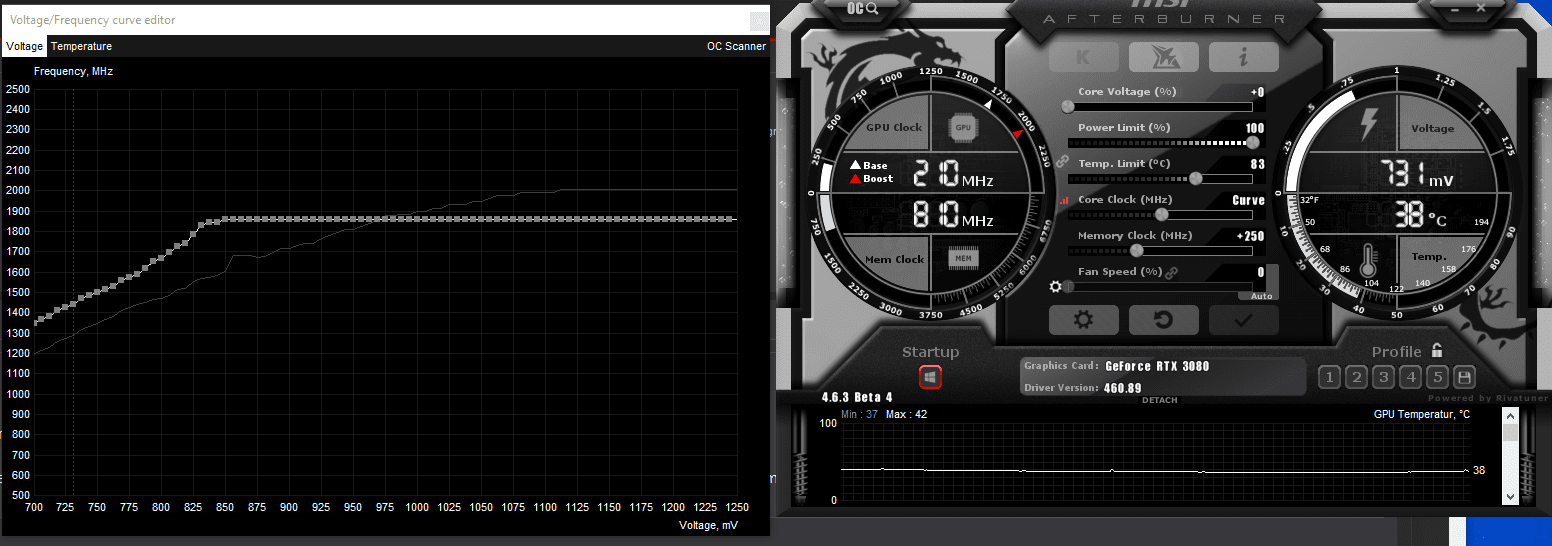 Hab im Afterburner 1950@0.850 eingestellt und in TimeSpy Boostet der mir auf 1980@0.85?!?