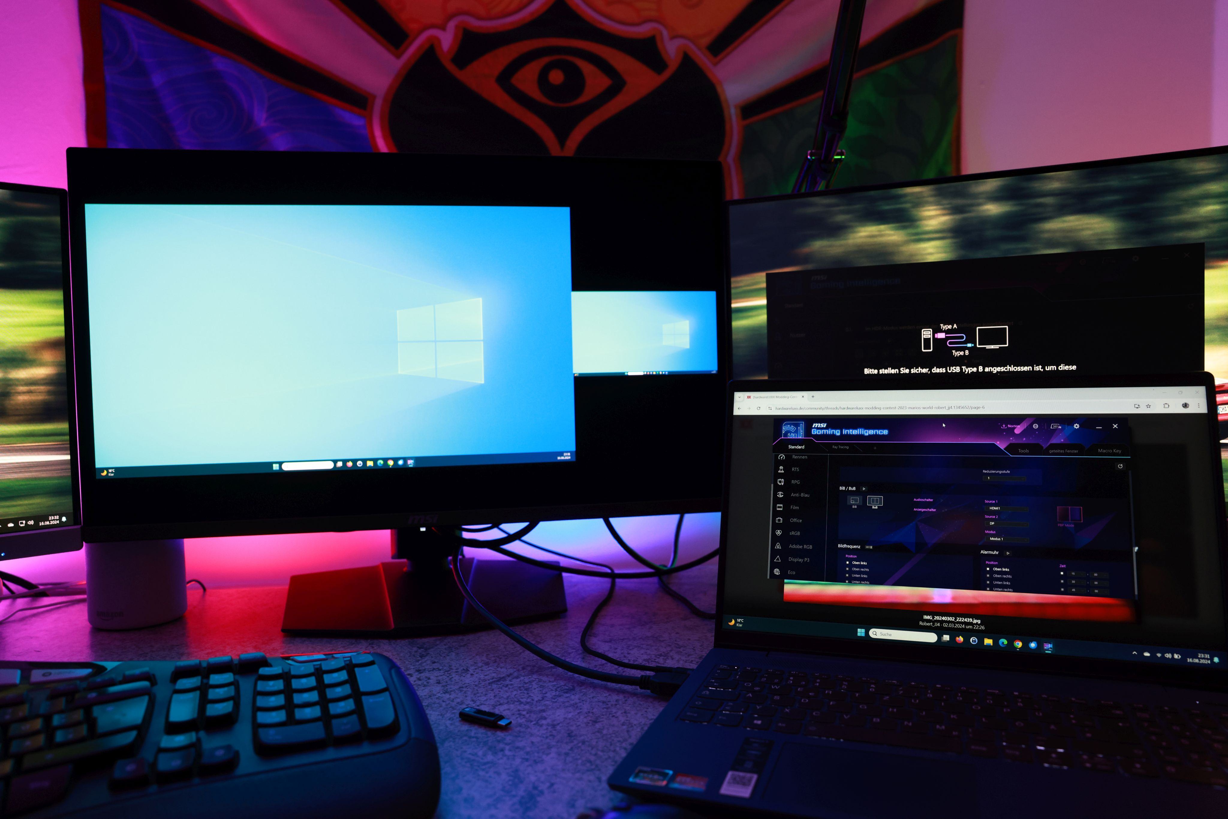 Getestet wurde hier mit meinem Desktop, verbunden über Displayport und USB-B Kabel, und meinem Lenovo Notebook, verbunden über HDMI und USB-C Kabel.
