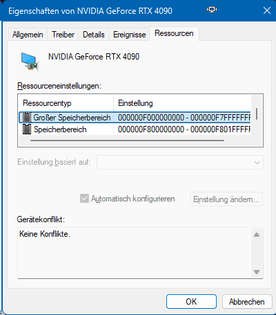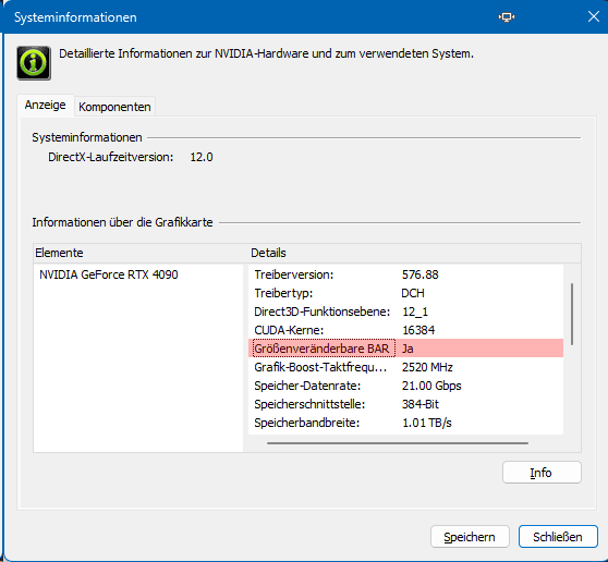 Sowohl laut Gerätemanager als auch laut NVidia Systeminfo ist Resize Bar aktiviert.