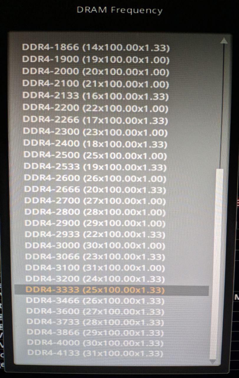 im Moment probiere ich etwas mit meinem RAM rum und habe dabei festgestellt, dass einige Taktfrequenzen im BIOS fehlen.