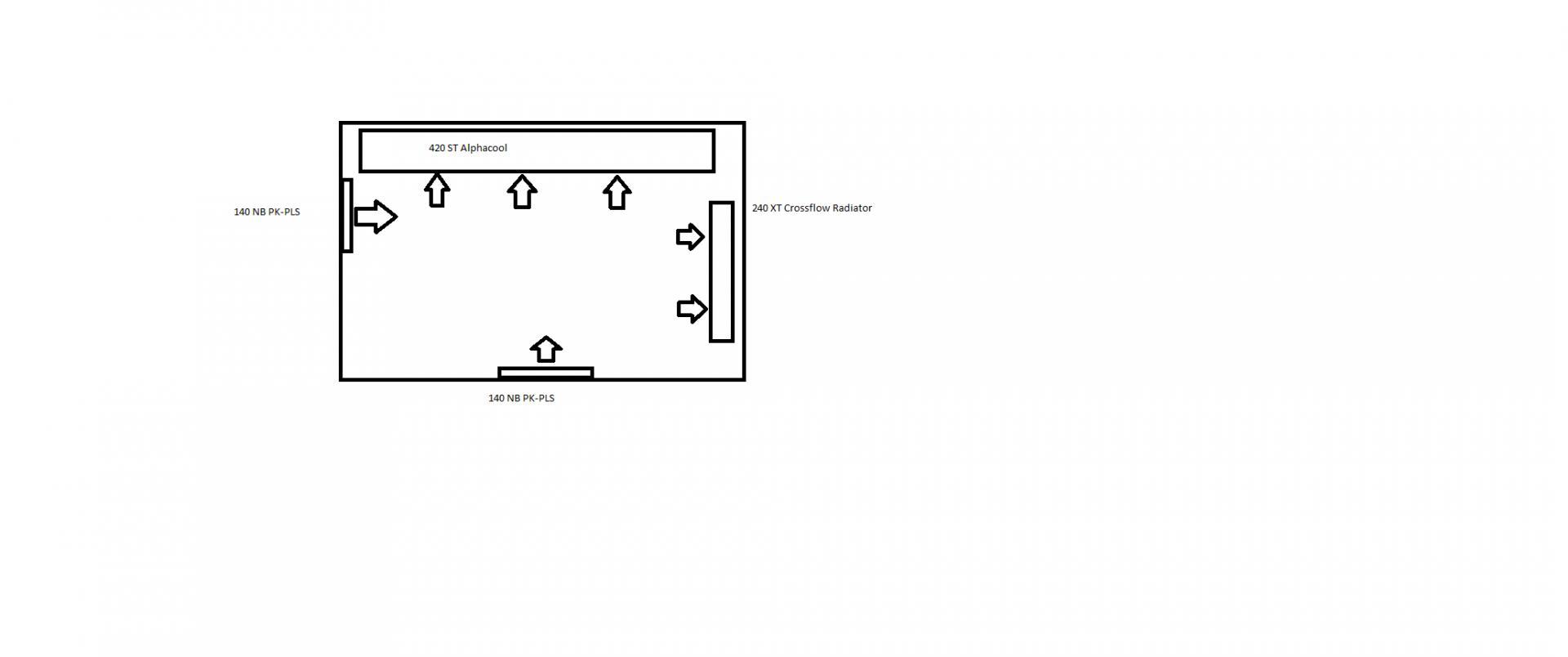 Eingebaut wurden der 420er im Deckel, sowie der 240er nach draußen blasend in der Front. Für Frischluft sorgen die beiden NB PK-PLS hinten einblasend und unten einblasend.