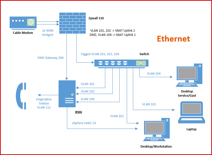 Da die vLAN's alle auf dem ESXi existieren, habe ich zwei Möglichkeiten: